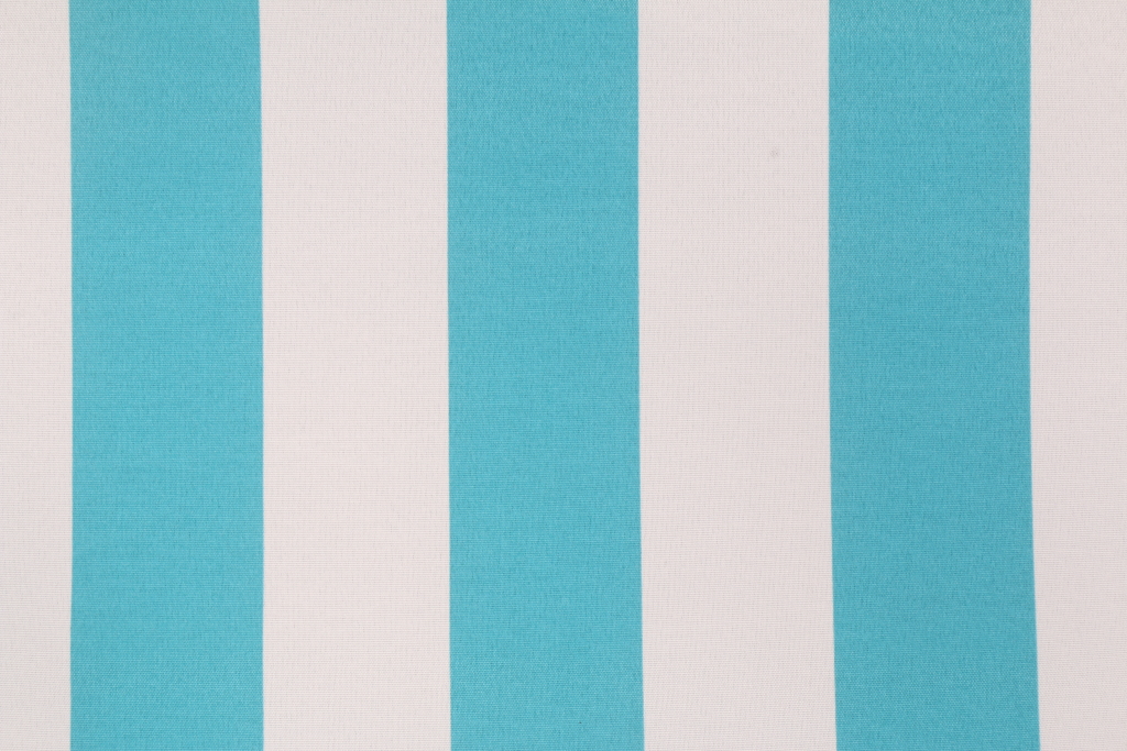 Richloom Cabana Stripe Printed Polyester Outdoor Fabric in Turquoise. This printed indoor/outdoor fabric is perfect for any project where the fabric will be exposed to the weather. Uses include cushions, tablecloths, upholstery projects, decorative pillows and craft projects. This fabric has a slightly stiff feel but is easy to work with.