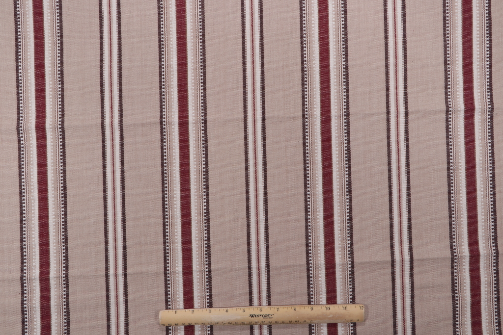 1.2 Yards Castillo Woven Cotton Stripe Decorator Fabric in Bordeaux Details