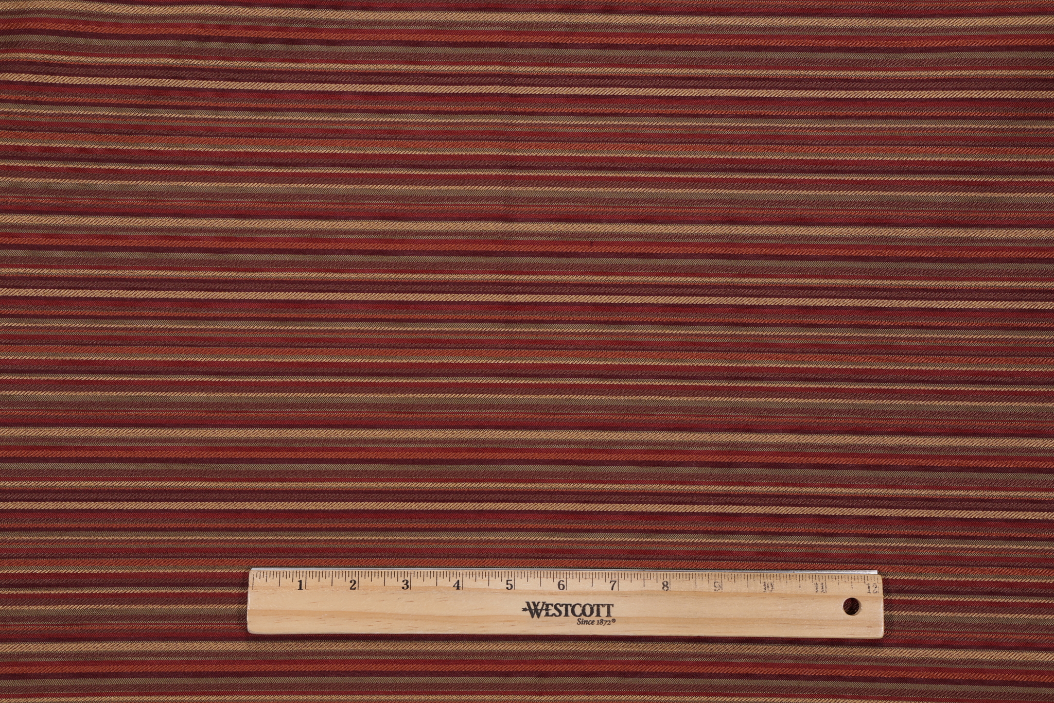 5.75 Yards Stripe Woven Upholstery Fabric in Maroon/Multi Details
