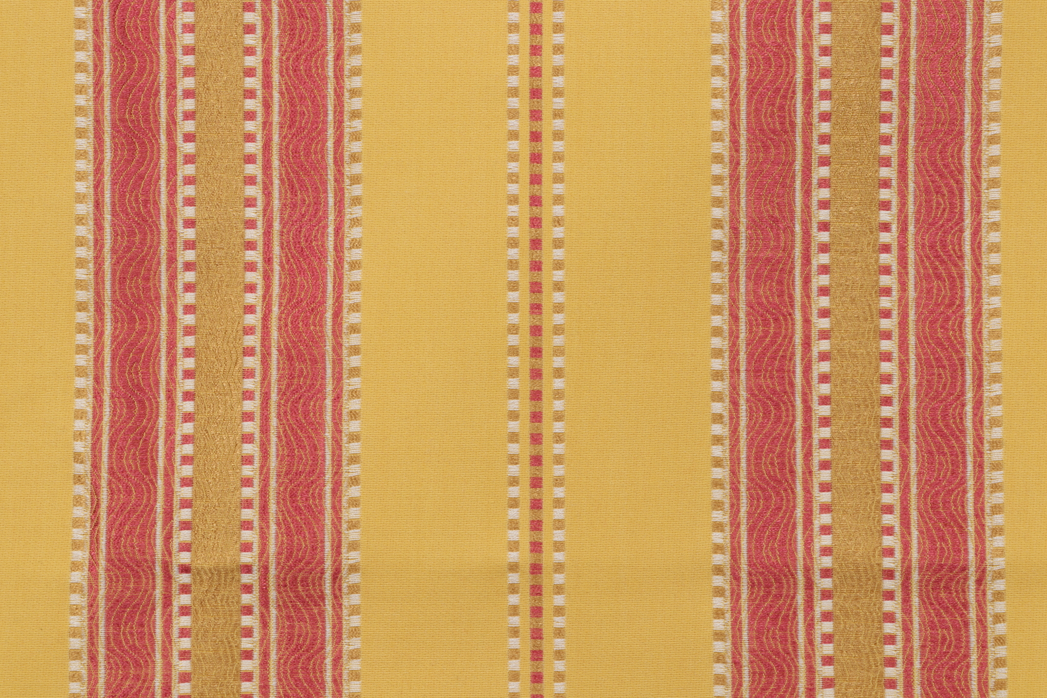 Scalamandre Stripe Woven Decorator Fabric in Summer is a remnant. Fabric remnants refer to leftover pieces of fabric from production runs at manufacturing sites or pieces that remain from by the yard stock. The lengths of these remnants can vary from a few inches to several yards and are typically sold at a reduced price, since they represent remaining inventory.