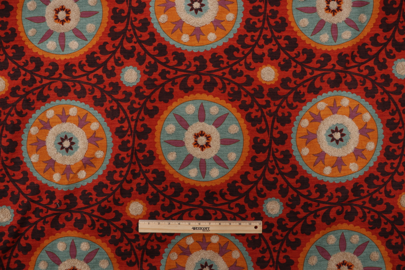 3 Park Tribal Thread Printed and Embrodered Cotton Drapery Fabric in Sunset Details