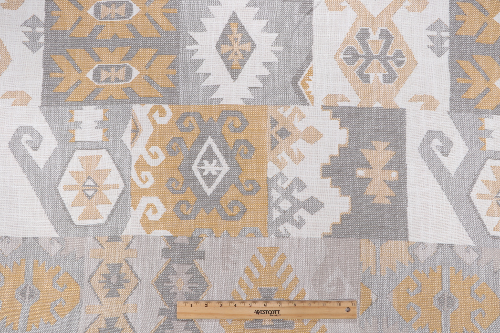 12.5 Yards Kilim Woven Solution Dyed Acrylic Outdoor Fabric in Mustard Details
