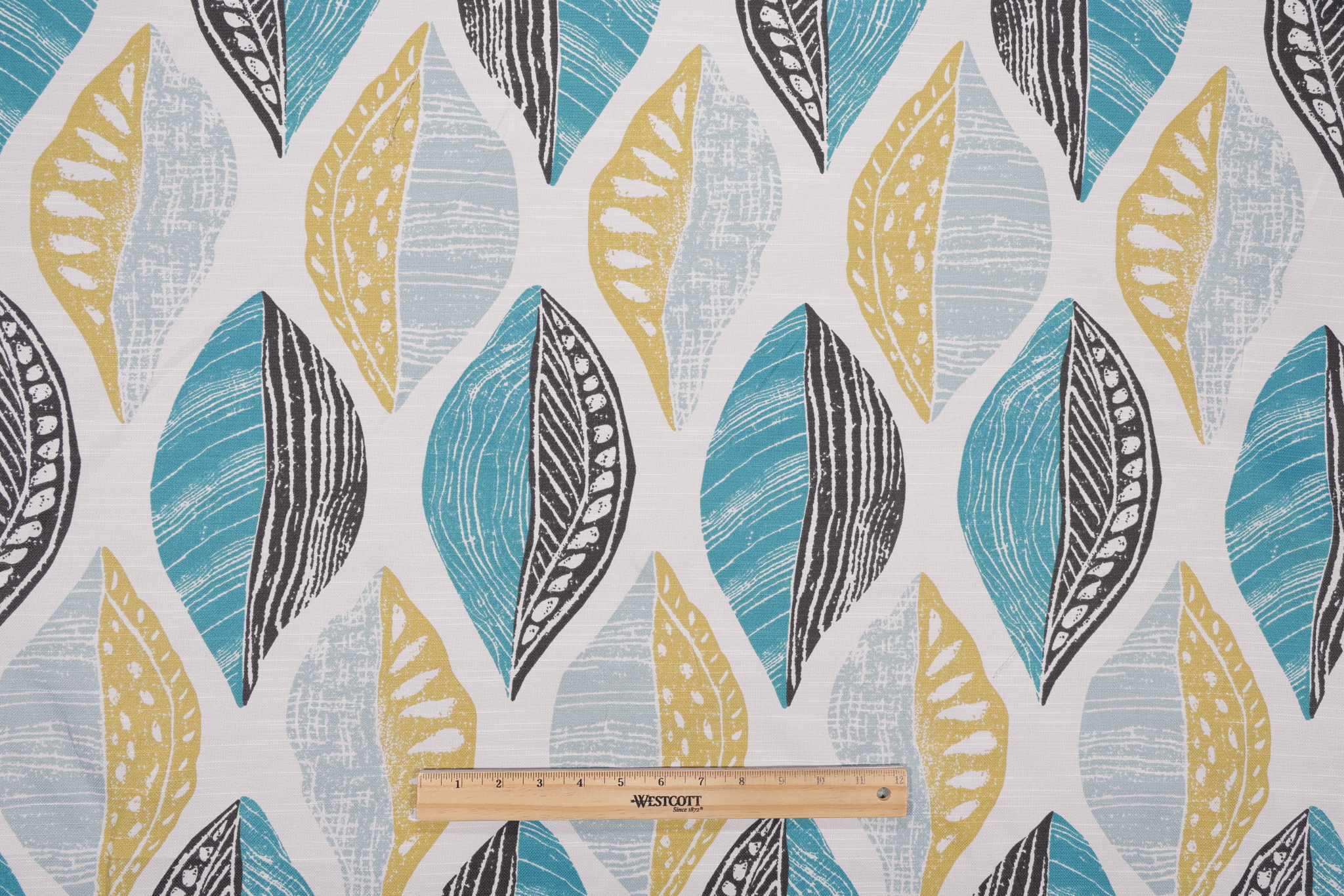 1 Yards Robert Allen Leaf Block Printed Polyester Outdoor Fabric in Teal/Citron Details