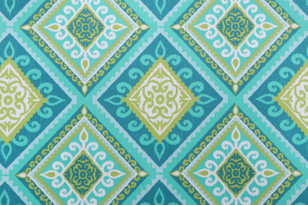 1.88 Yards Terrasol - Spanish Tile Printed Polyester Outdoor Fabric in Peacock Details