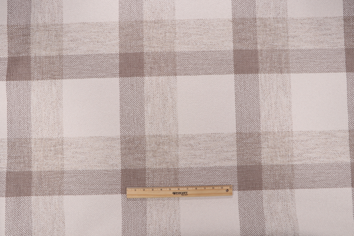 Golding Shelburne Plaid Woven Upholstery Fabric in Taupe Details
