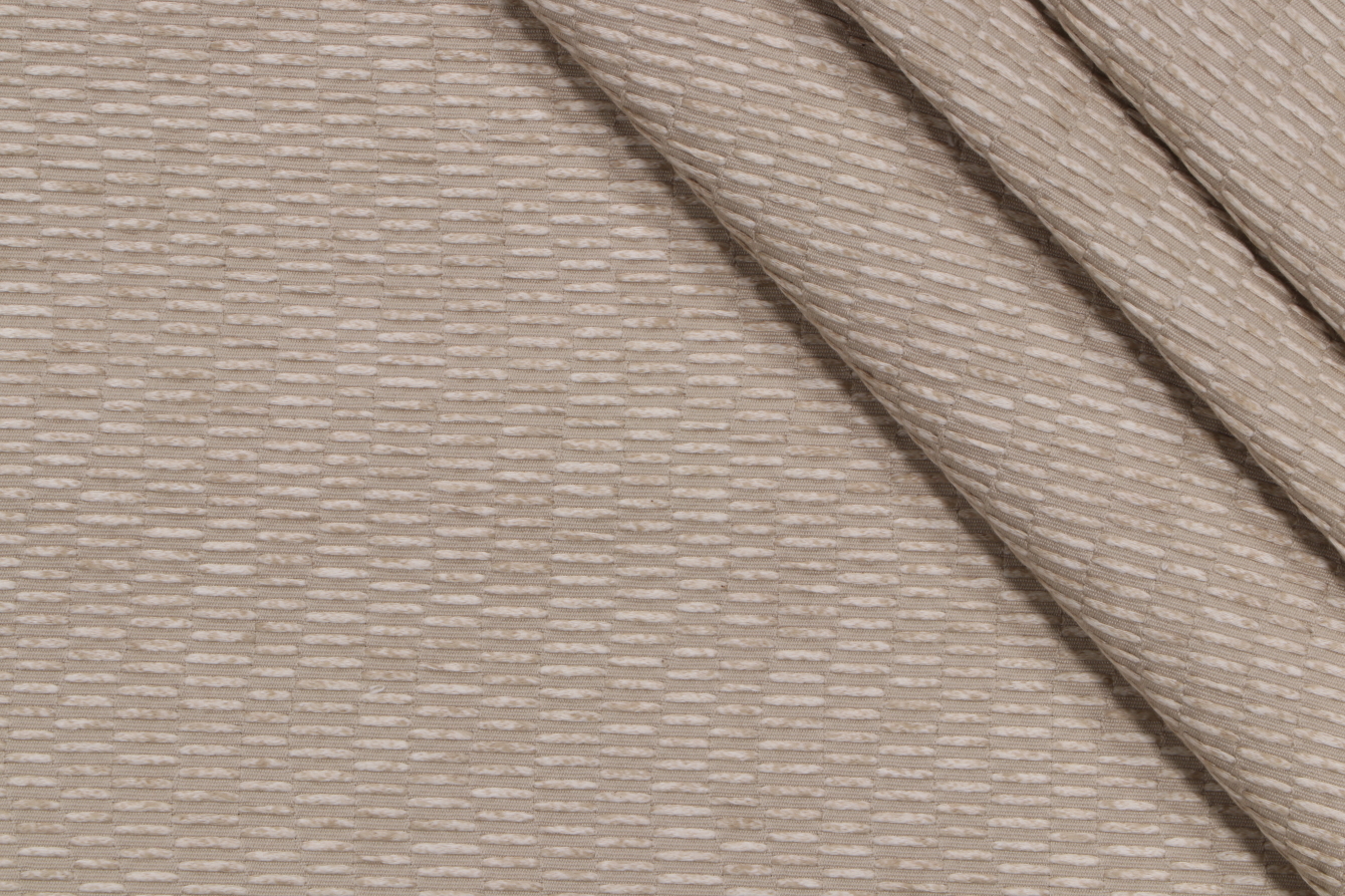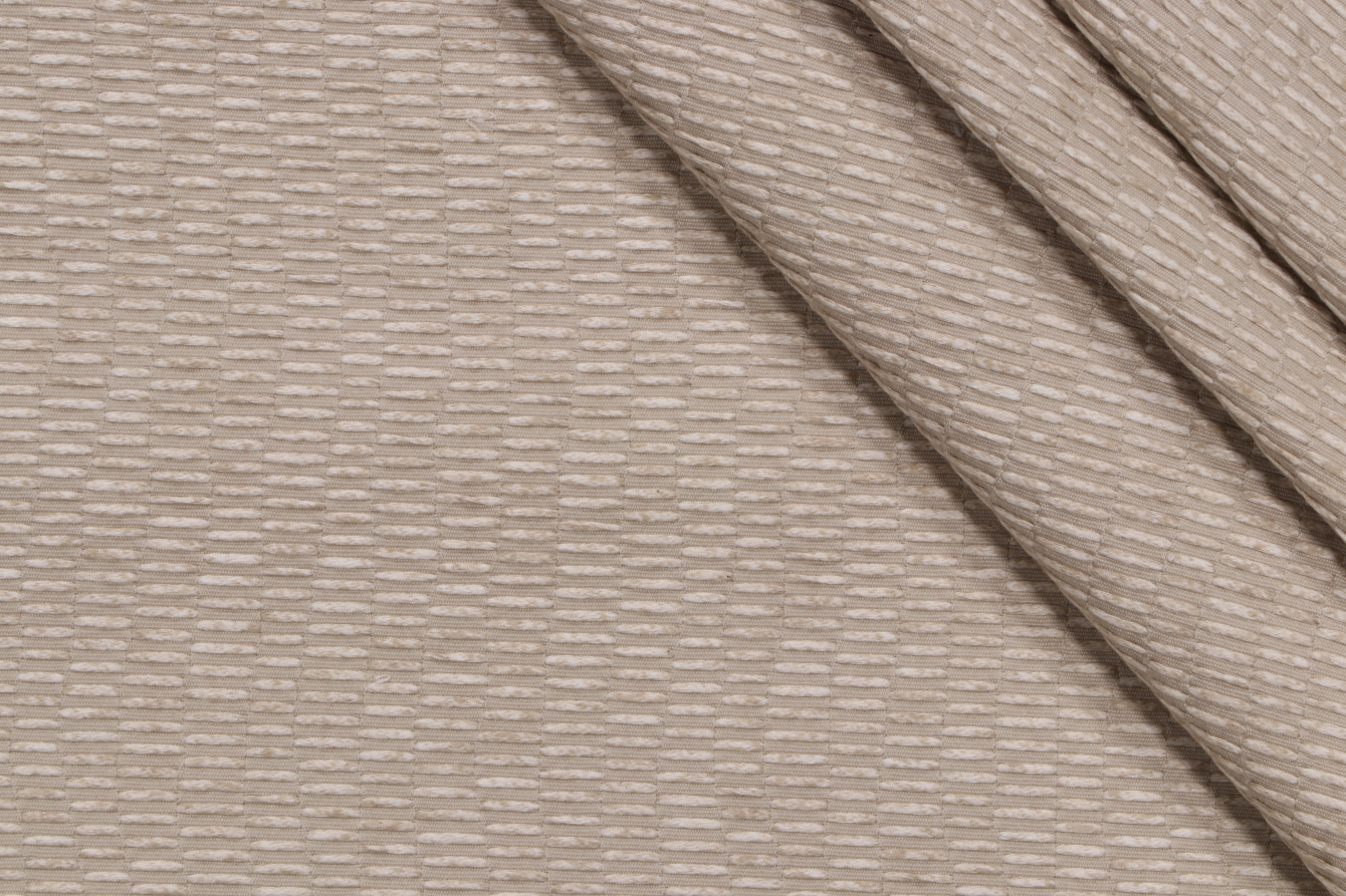 Here we have 7.38 yards of Raine Weave, a beautiful woven upholstery fabric from Scalamandre. This fabric can reupholster an ottoman, a small bench seat, or 6-8 dining chair seats. Note: If you are unsure about the suitability of this fabric for your specific use case please contact us prior to ordering.
