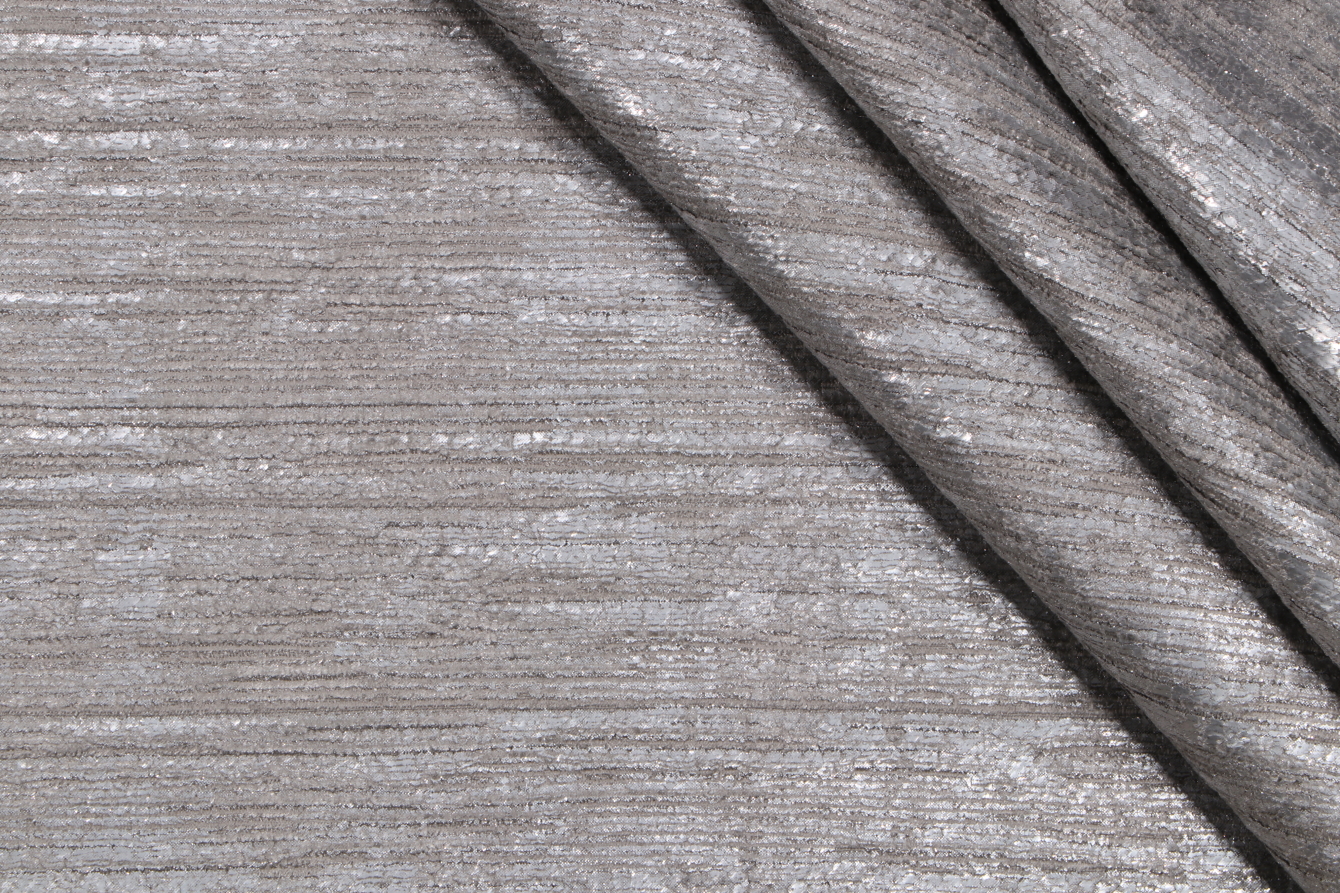 8 Yards Strie Woven Chenille Upholstery Fabric in Silver Details