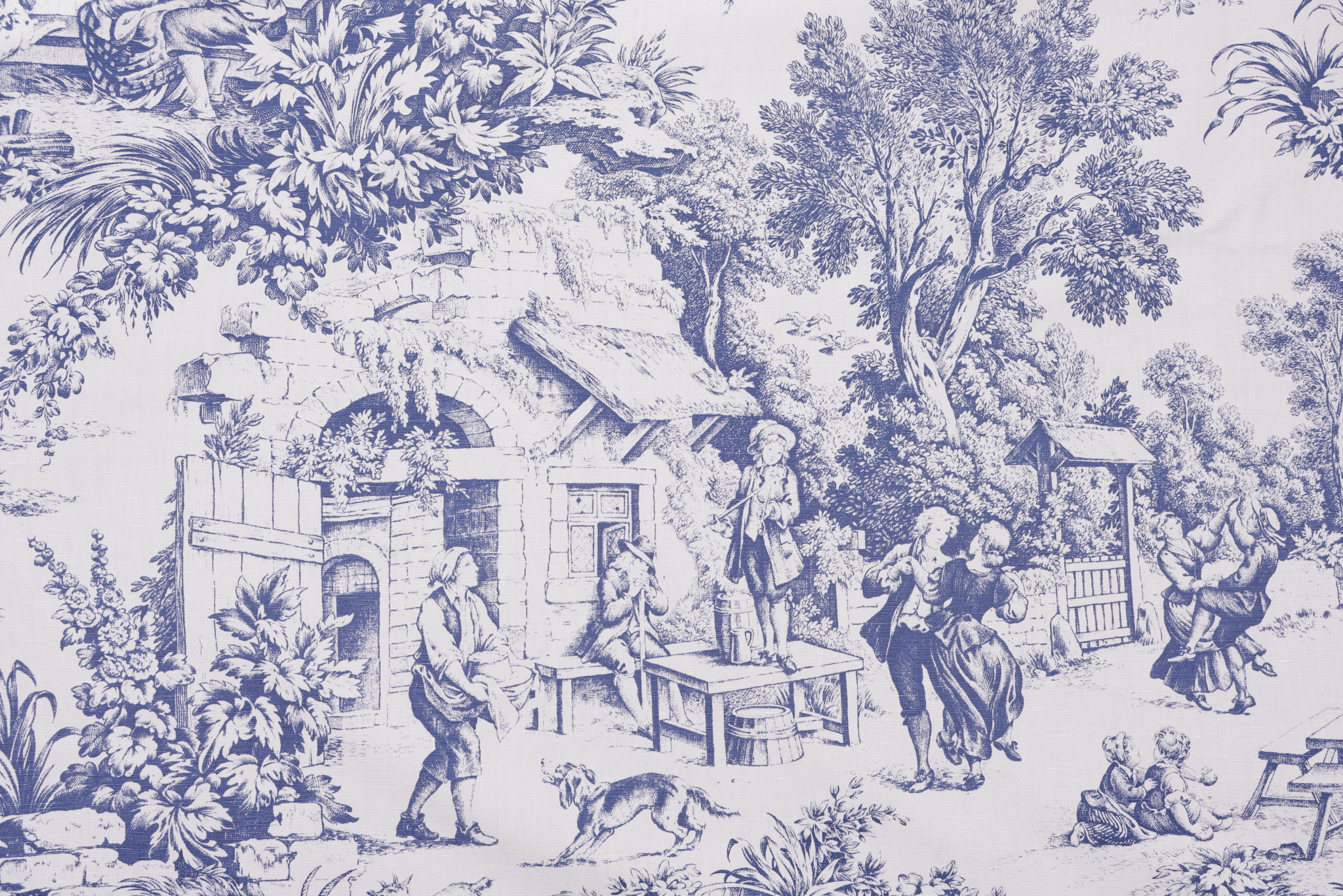 2.25 Yards Dutton Toile Printed Cotton Drapery Fabric in Navy Details