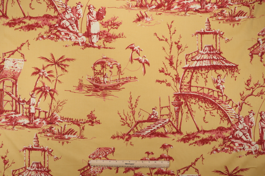 4.5 Yards Thibaut Meridian F95301 Printed Cotton Drapery Fabric in Red on Gold Details