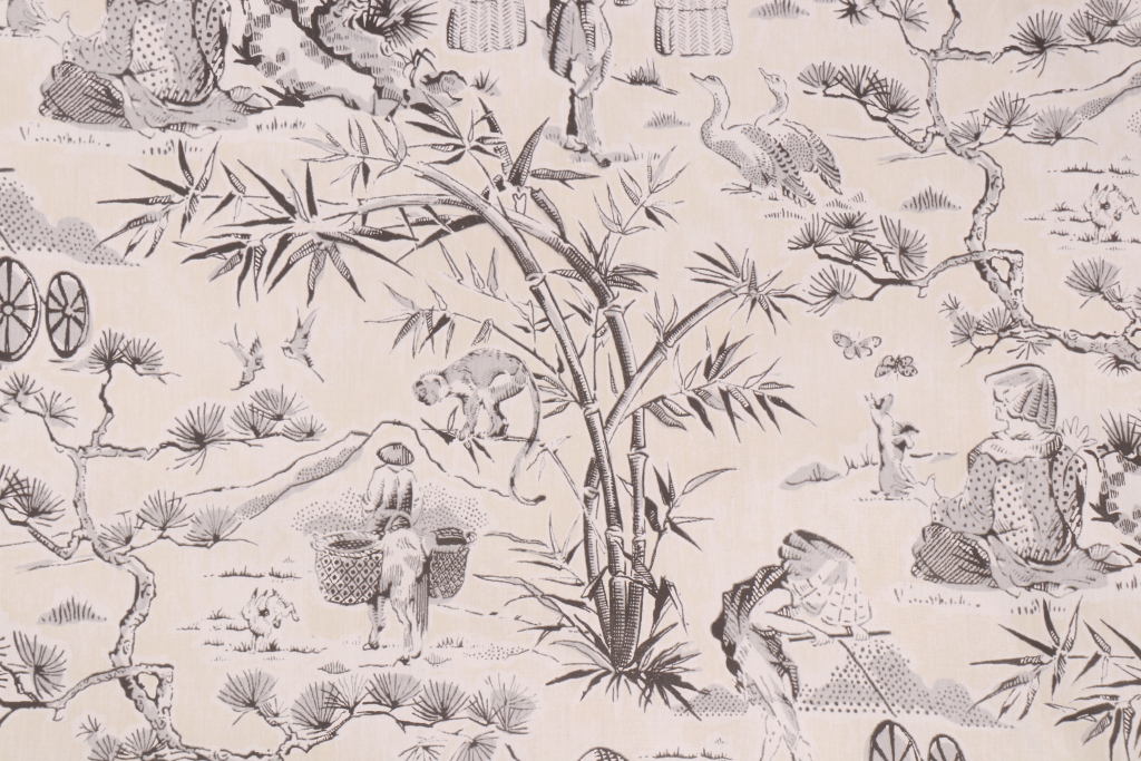 10.38 Yards Waverly Haiku Toile Printed Cotton Drapery Fabric in Noir Details