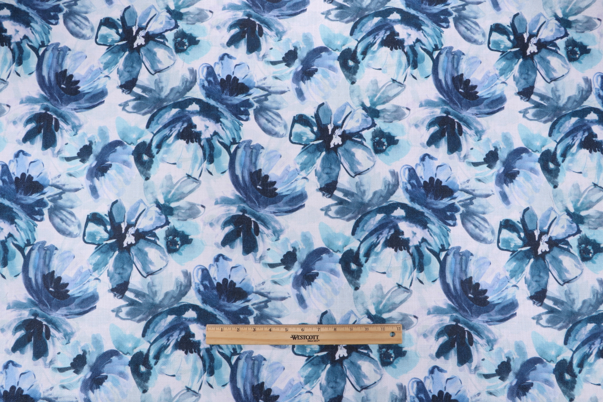 1 Yards Crypton Florescence High Performance Printed Decorator Fabric in Indigo on Linen Details