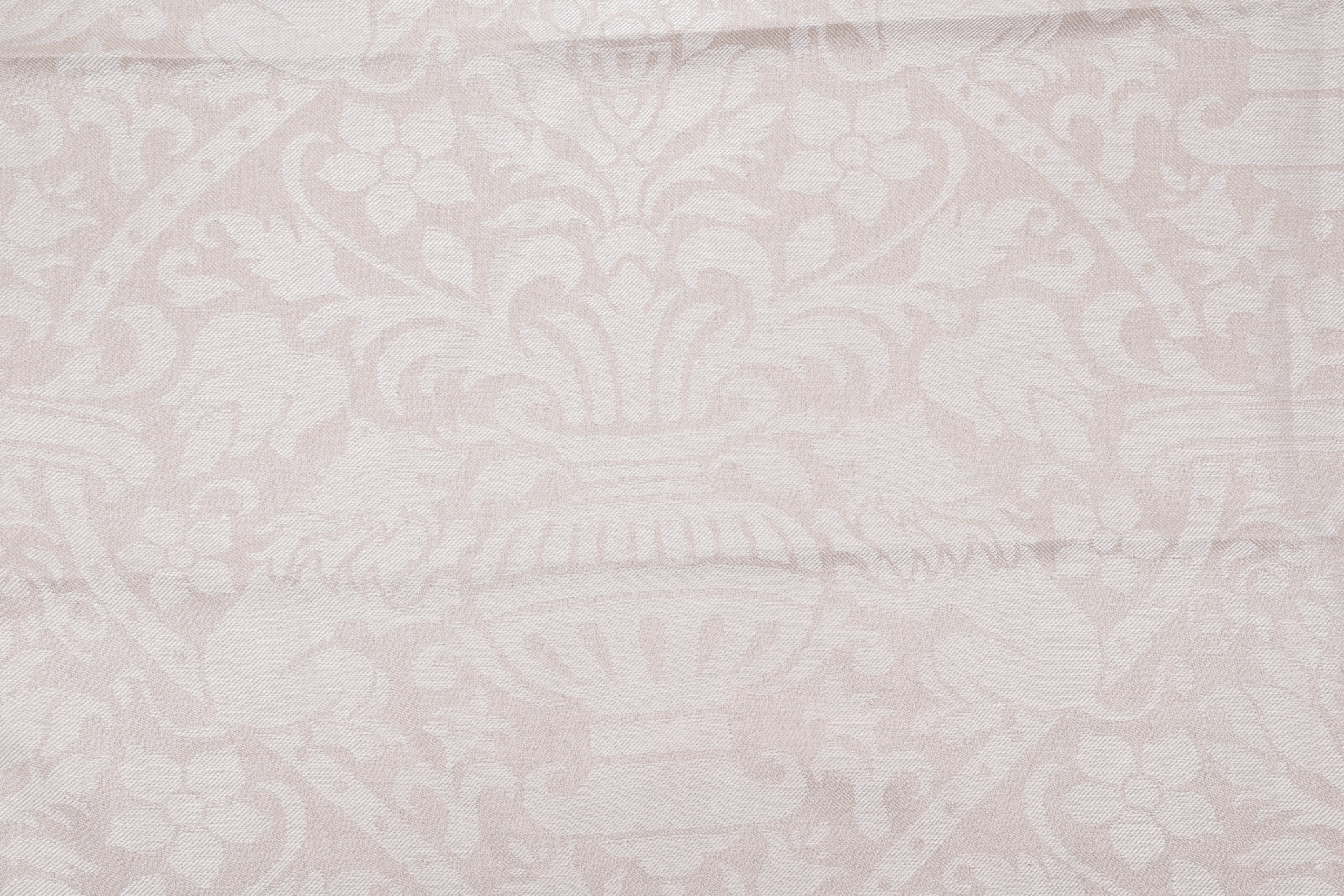 Fincher Damask Decorator Fabric in Beige is a remnant, which is sold as a whole piece.