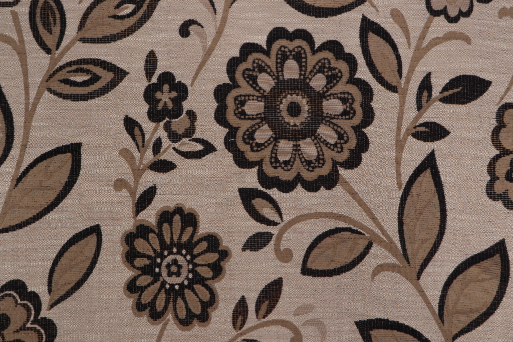 Floral Woven Chenille Upholstery Fabric in Onyx Details