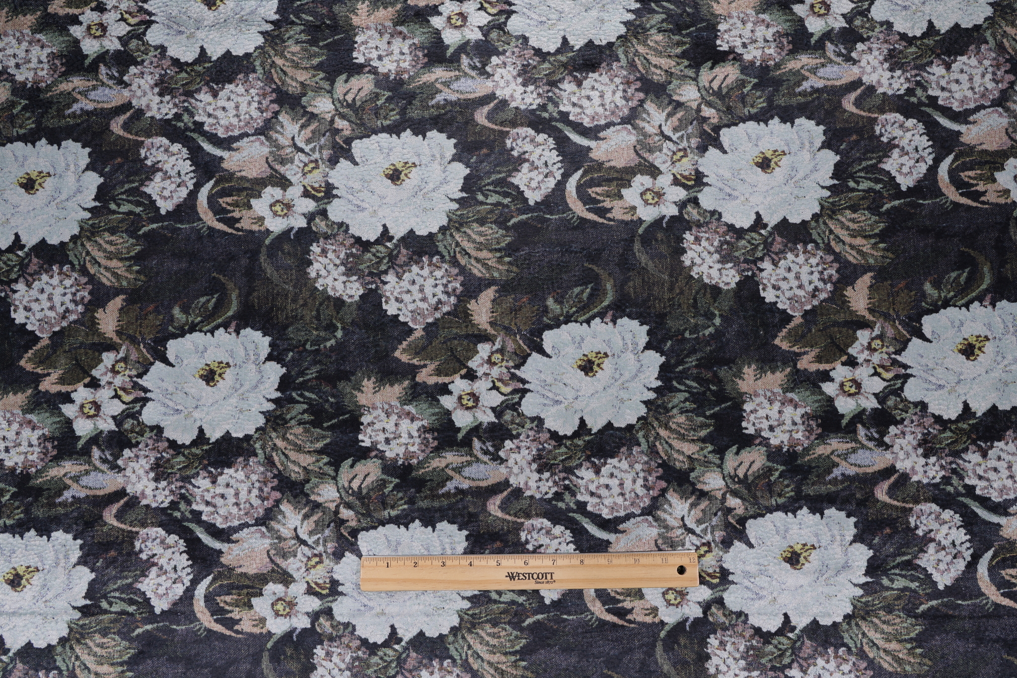 1 Yards Garden Printed Velvet Upholstery Fabric in Midnight Details