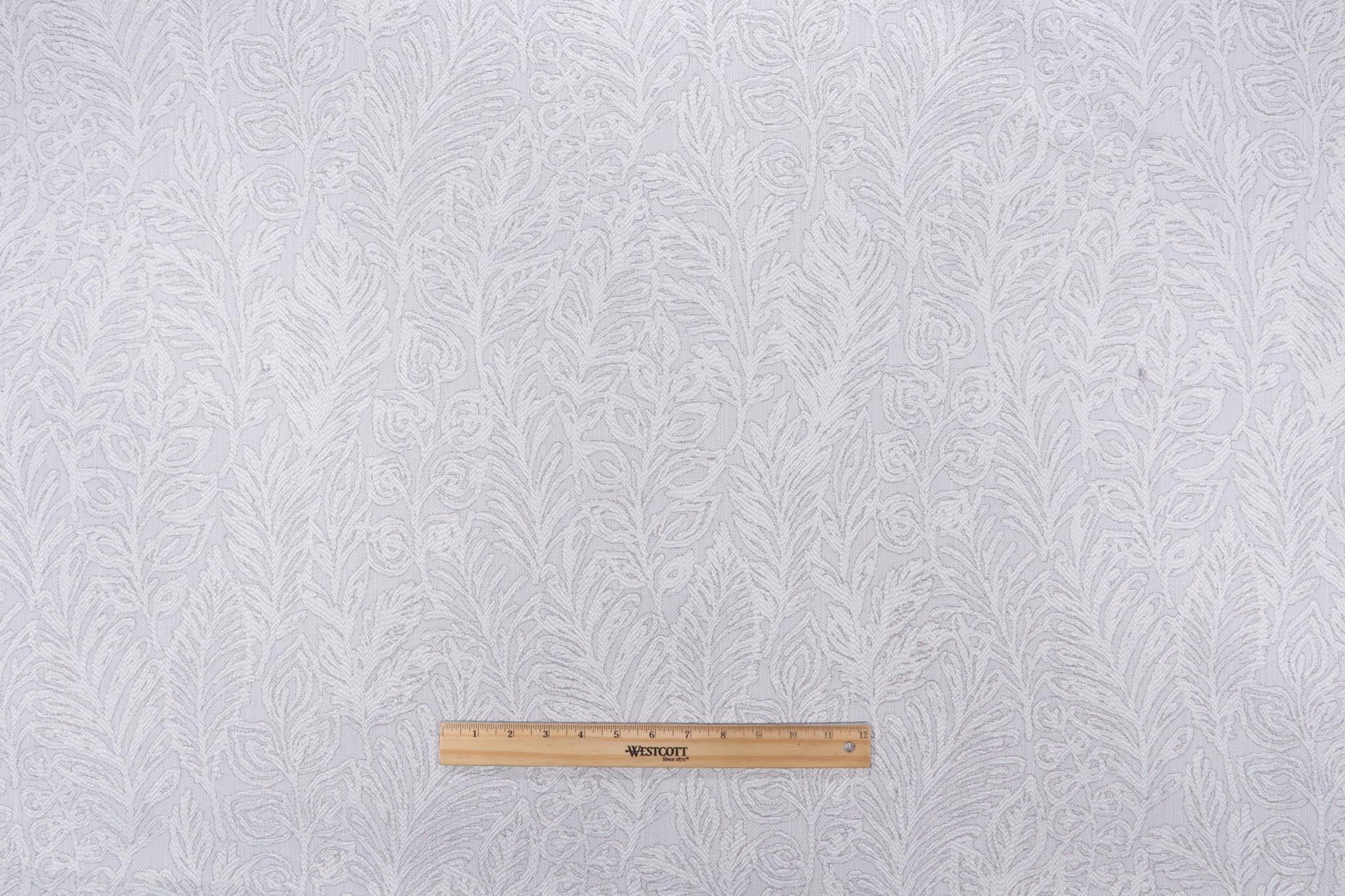 If you order a sample of PK Lifestyles Climbing Leaves Woven Chenille Upholstery Fabric in Frost the size of the swatch you receive will be approximately 4" x 6". This is enough fabric to verify color and texture, but may not be large enough to capture an entire pattern.