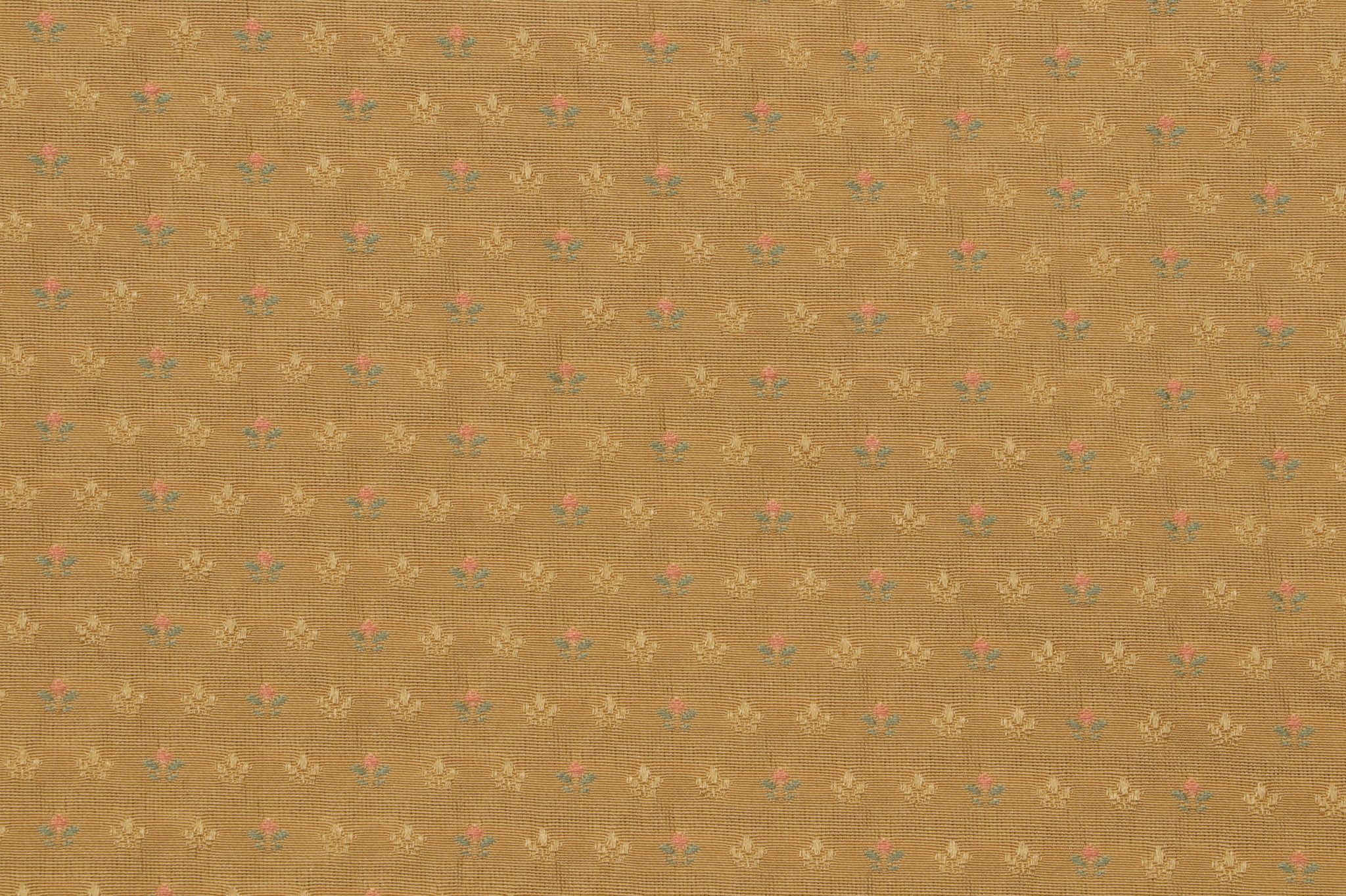 Scalamandre Bari Fiorellino Woven Upholstery Fabric in Dark Gold is a remnant. Fabric remnants refer to leftover pieces of fabric from production runs at manufacturing sites or pieces that remain from by the yard stock. The lengths of these remnants can vary from a few inches to several yards and are typically sold at a reduced price, since they represent remaining inventory.