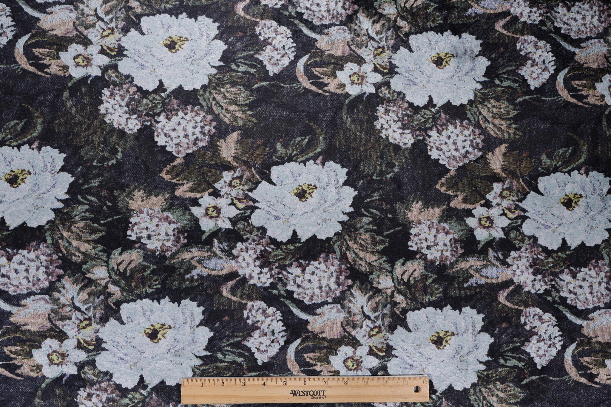 1 Yards Shackton Printed Velvet Upholstery Fabric in Midnight Details