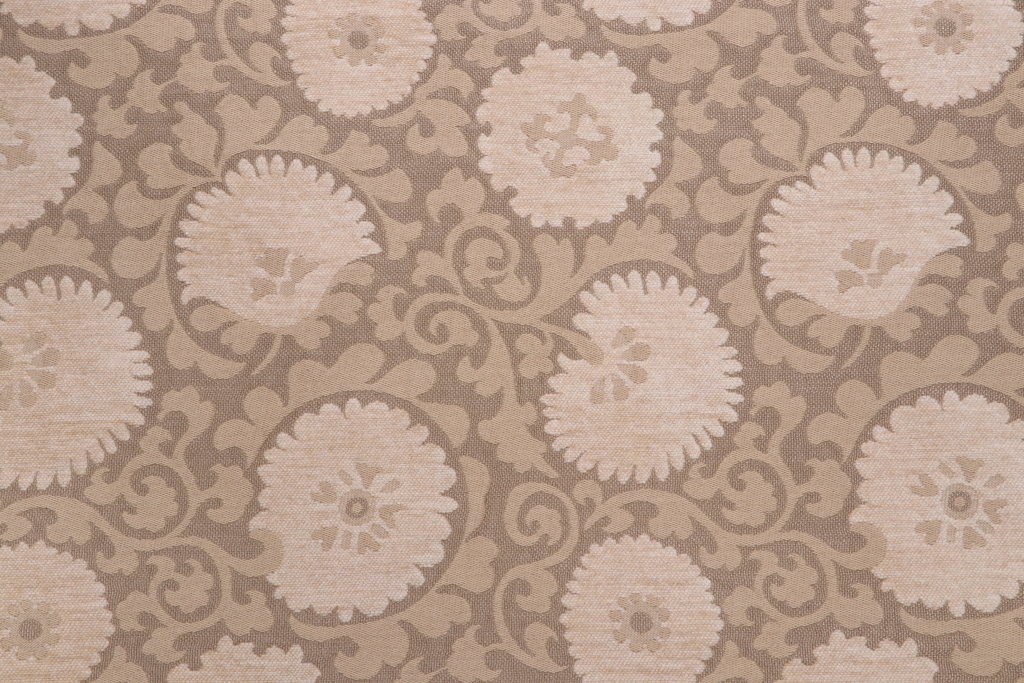 Thibaut Suzani W98697 Woven Chenille Upholstery Fabric in Beige is a remnant. Fabric remnants refer to leftover pieces of fabric from production runs at manufacturing sites or pieces that remain from by the yard stock. The lengths of these remnants can vary from a few inches to several yards and are typically sold at a reduced price, since they represent remaining inventory.