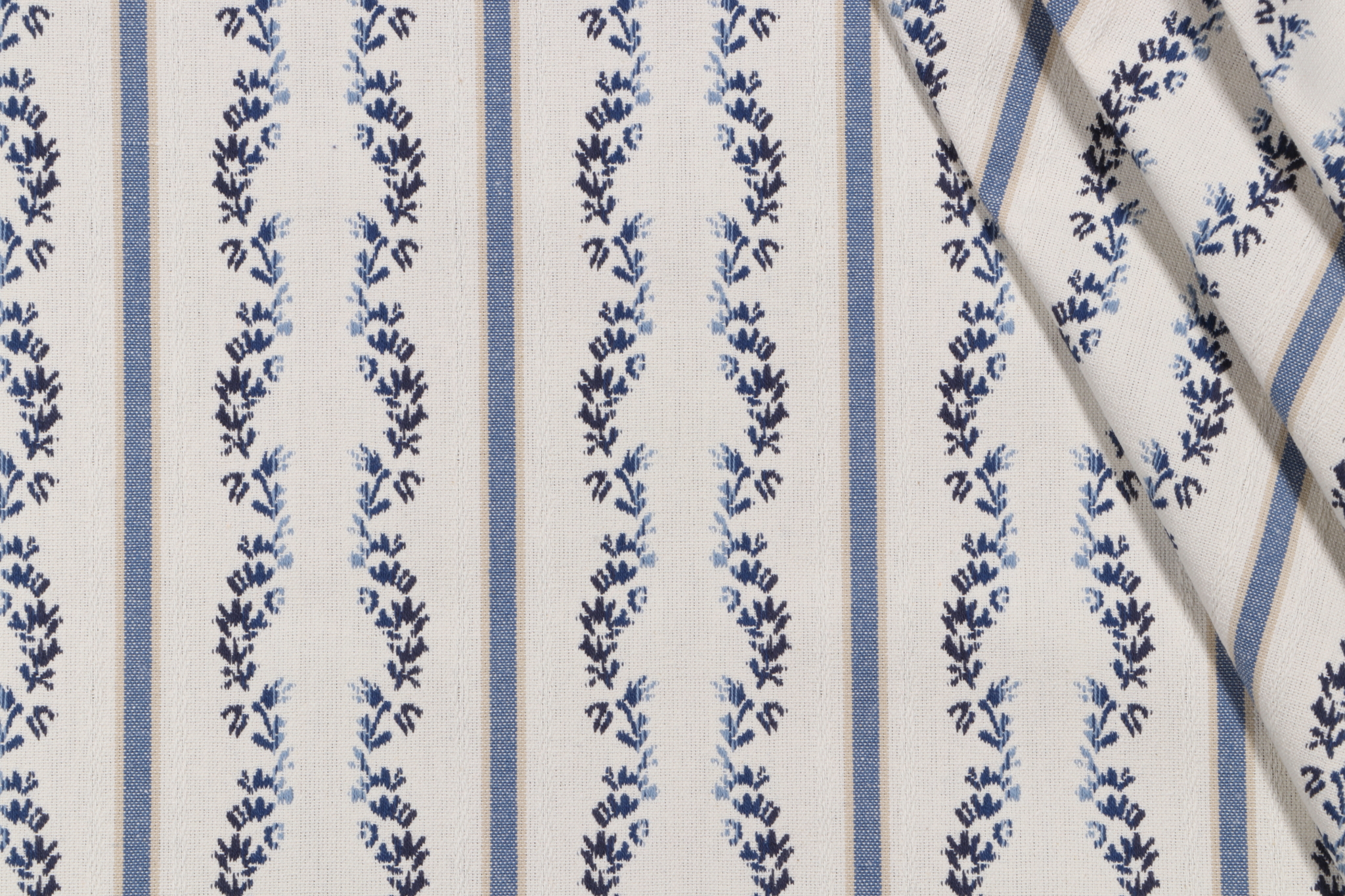 Waverly Regency Stripe Woven Upholstery Fabric in Caspian is a remnant. Fabric remnants refer to leftover pieces of fabric from production runs at manufacturing sites or pieces that remain from by the yard stock. The lengths of these remnants can vary from a few inches to several yards and are typically sold at a reduced price, since they represent remaining inventory.