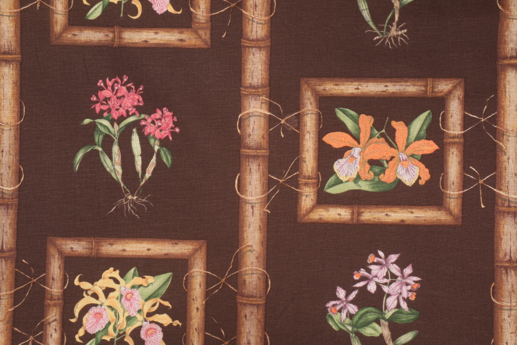 Samarcand Selections by Ginny Stine 3919-2 Printed Linen Drapery Fabric in Dark Chocolate. This printed fabric is perfect for window treatments, decorative pillows, handbags, light duty upholstery applications and almost any craft project. This fabric has a soft workable feel yet is stable and durable.