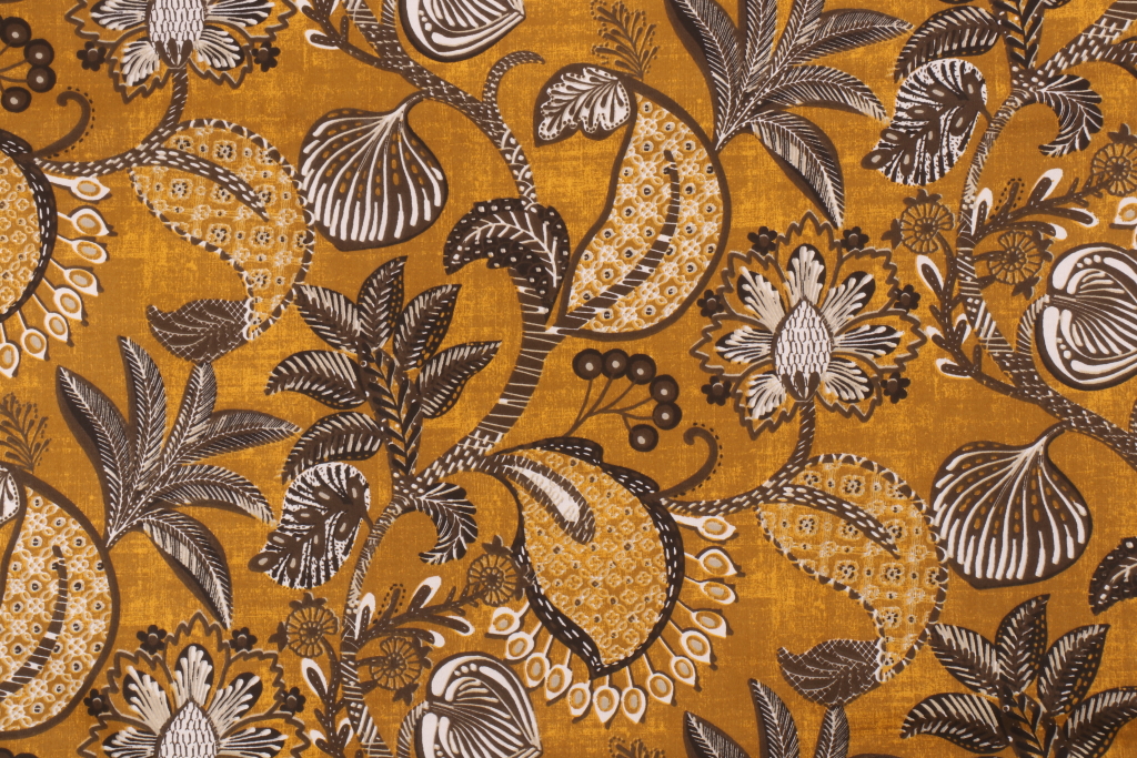 0.75 Yards Stof France Bhopal Printed Cotton Drapery Fabric in Moutarde Details