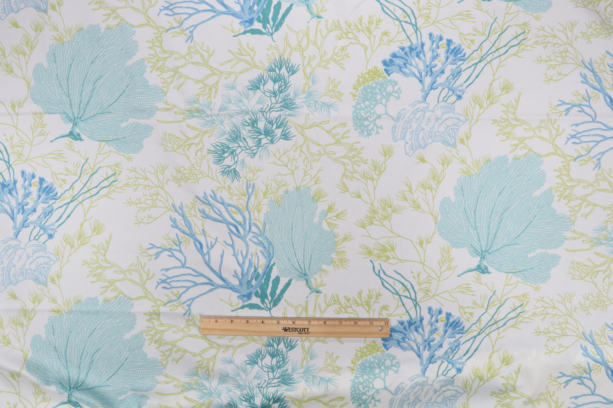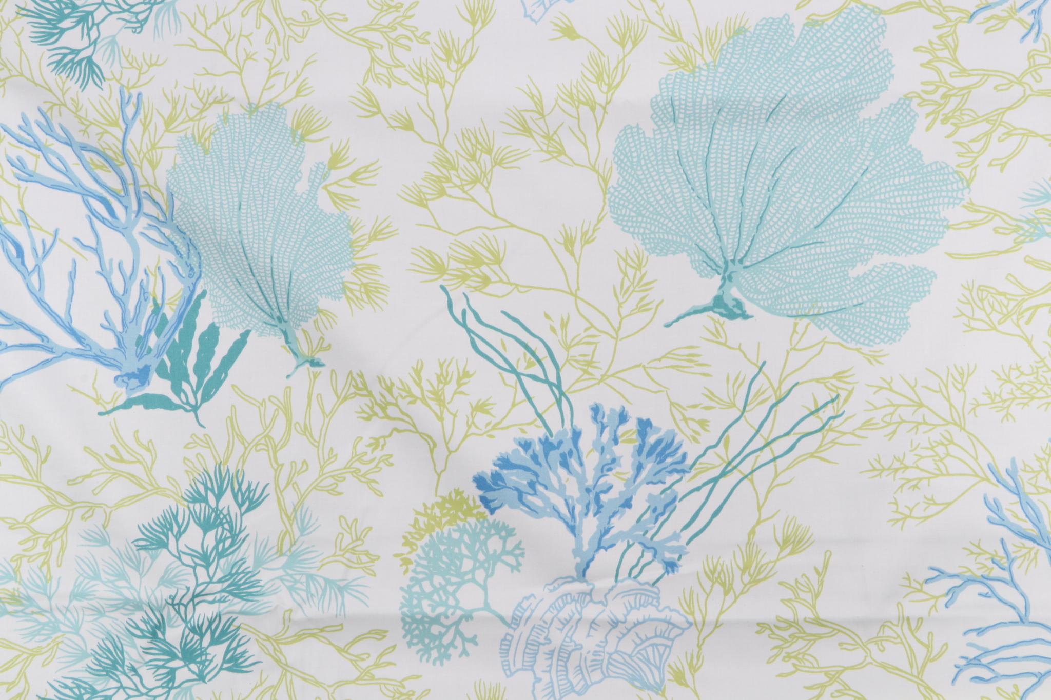 2.75 Yards Thibaut Molikini F95735 Printed Cotton Drapery Fabric in Aqua and Green Details