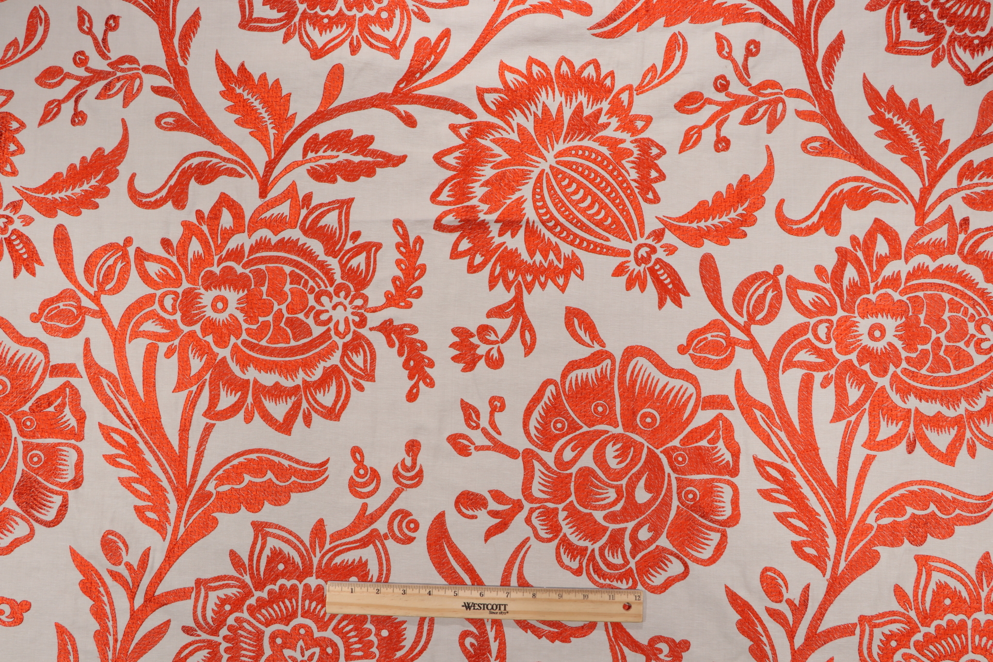 1 Yards Thibaut Rivera W713047 Embroidered Drapery Fabric in Coral and Flax Details