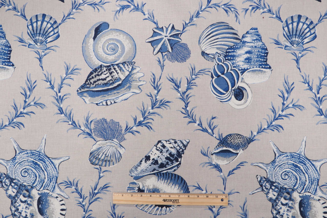 Thibaut Sumba Shell Printed Linen Blend Drapery Fabric in Blue Natural F95744 is a remnant, which is sold as a whole piece.