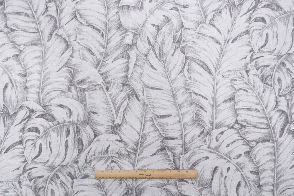 This listing showcases 1 yards of Jungle Love-Circa, a printed linen blend drapery fabric by Tommy Bahama. With beautiful hues of gainsboro, silver, dark gray, light steel blue, and gray, this fabric will perfectly accentuate your project. This fabric is suitable for short curtains, decorative tiebacks, or smaller window treatments. For discerning designers, Tommy Bahama fabrics offers unmatched quality and sophistication. Note: If you are unsure about the suitability of this fabric for your specific use case please contact us prior to ordering.