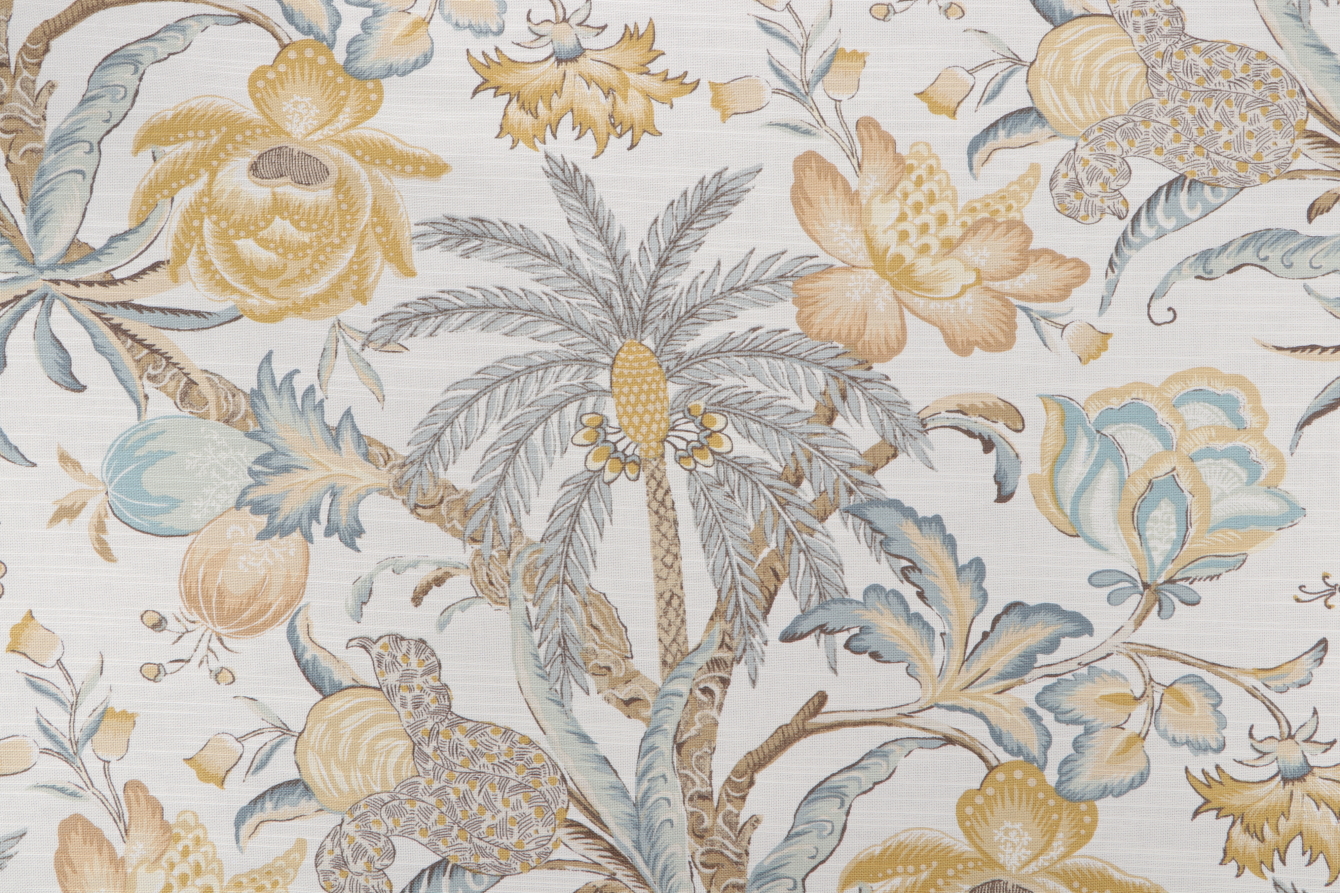 0.88 Yards Waverly Fiji Flora Printed Cotton Drapery Fabric in Blonde Details