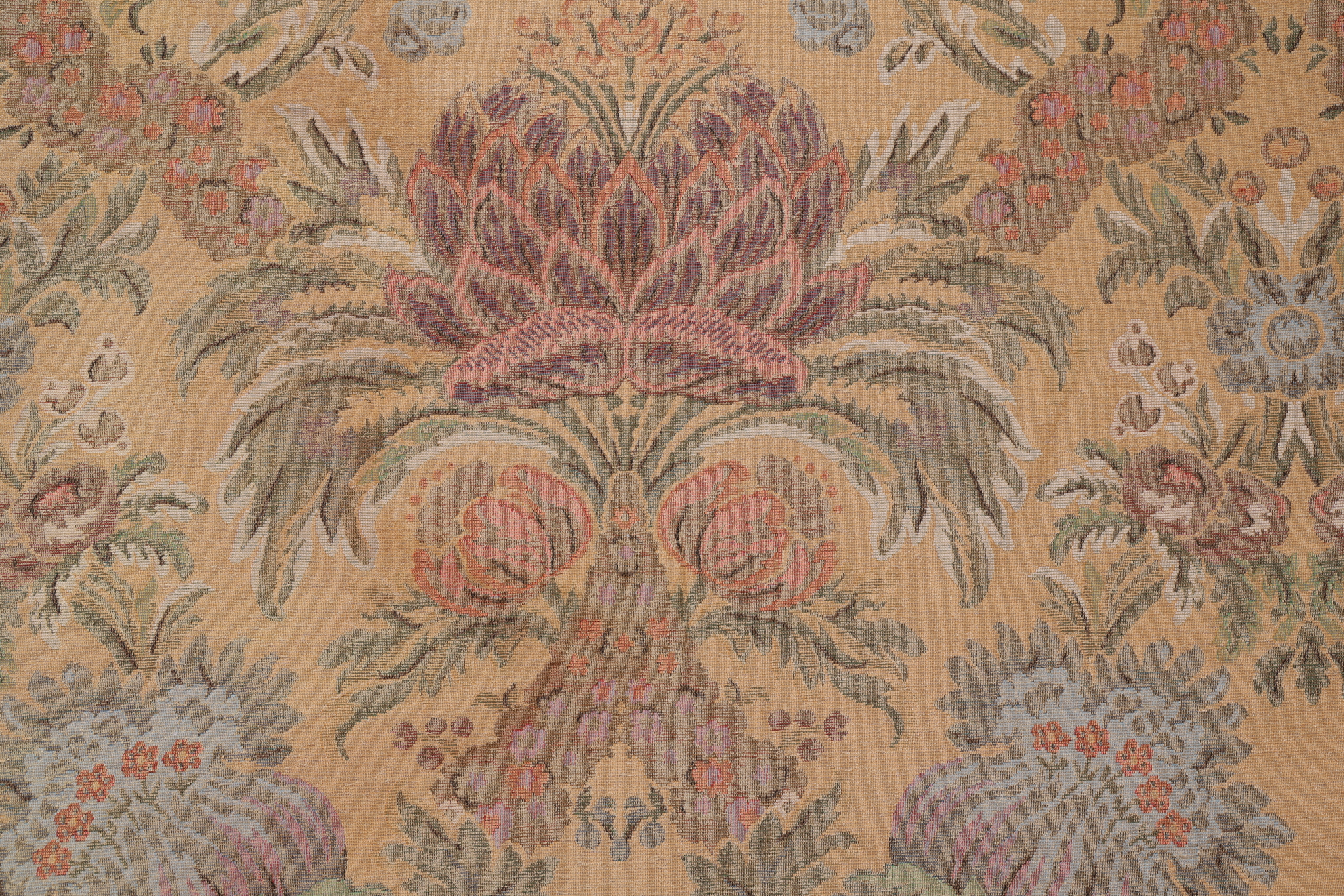 Bertha Chenille Tapestry Upholstery Fabric in Gold/Multi is a remnant, which is sold as a whole piece.
