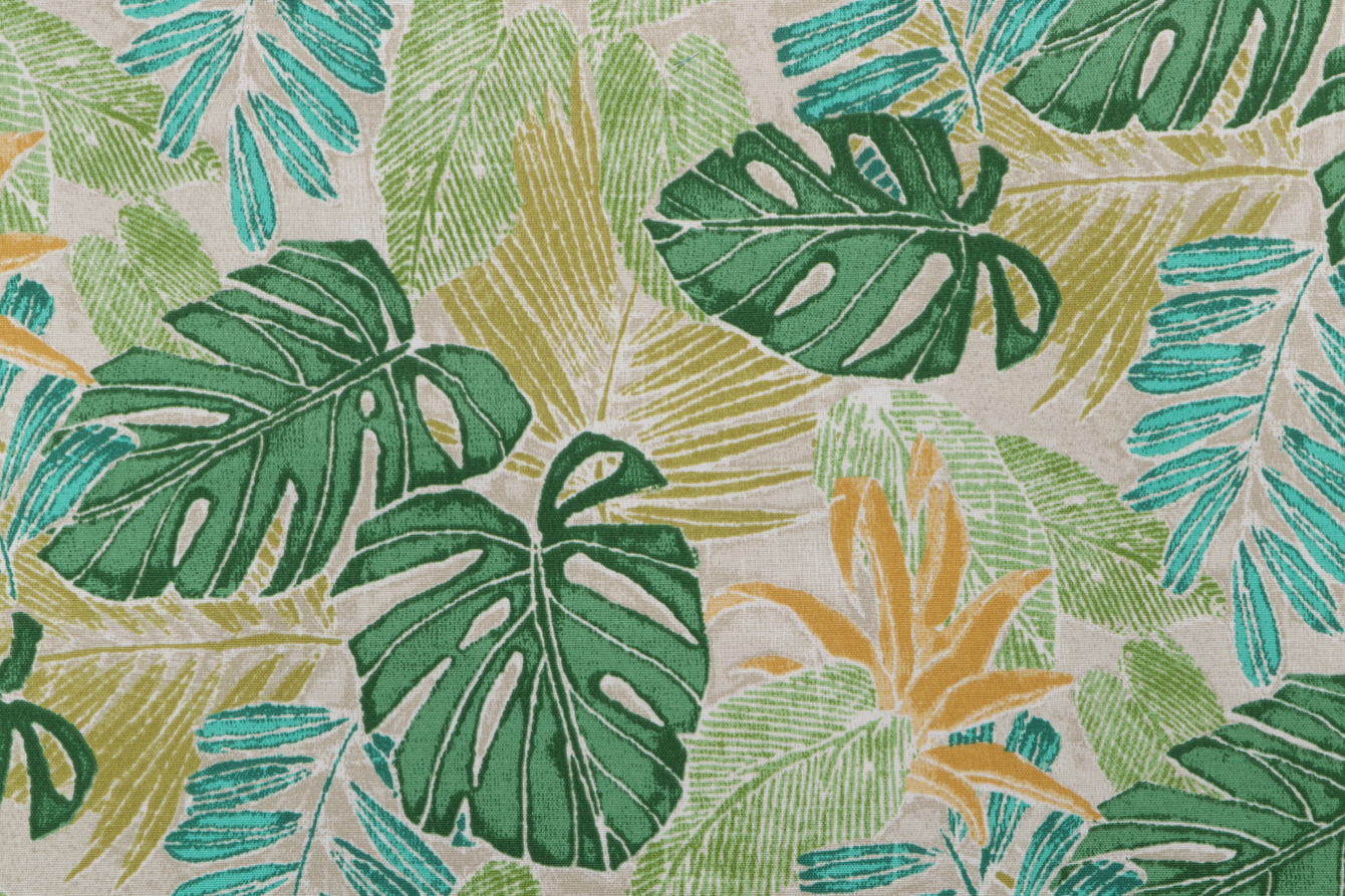 Presenting 3.63 yards of Batik Leaves, an exquisite printed polyester outdoor fabric by Tommy Bahama. Best suited for small outdoor projects like placemats, BBQ covers, or durable outdoor table runners. Note: If you are unsure about the suitability of this fabric for your specific use case please contact us prior to ordering.
