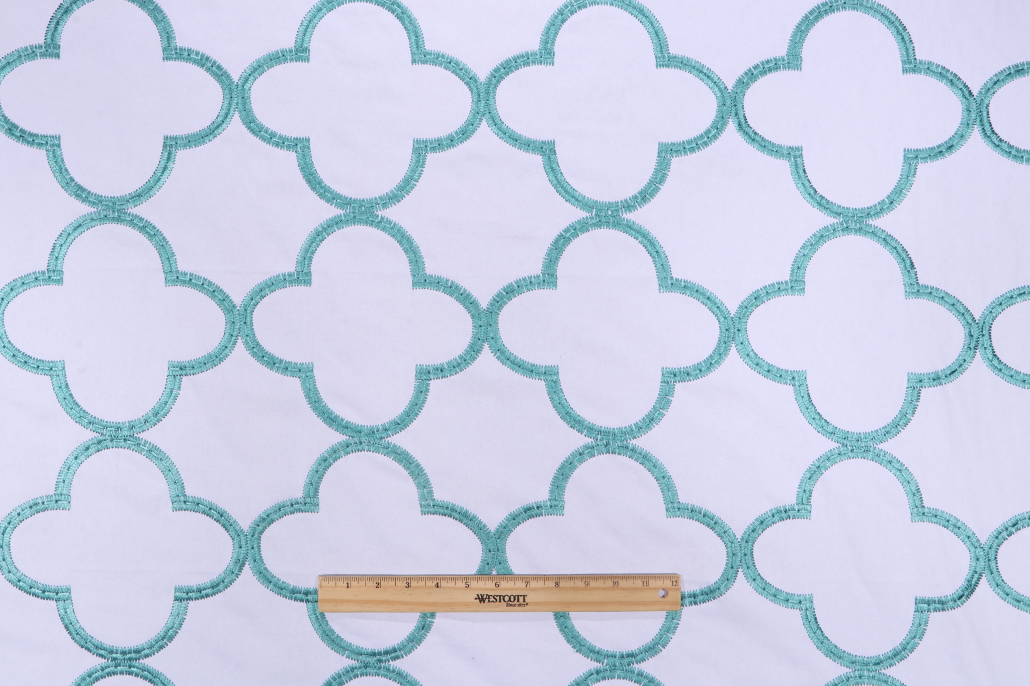 6.38 Yards Thibaut Mara W716004 Embroidered Drapery Fabric in Turquoise Details