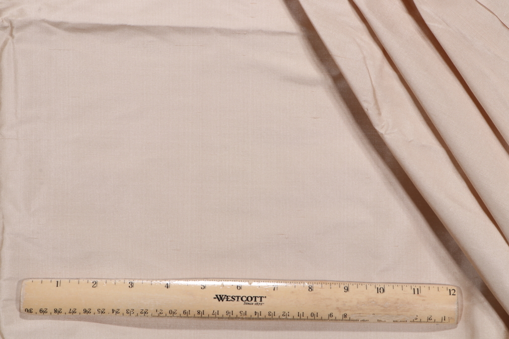 Amelia Silk Decorator Fabric in Vanilla is a remnant. Fabric remnants refer to leftover pieces of fabric from production runs at manufacturing sites or pieces that remain from by the yard stock. The lengths of these remnants can vary from a few inches to several yards and are typically sold at a reduced price, since they represent remaining inventory.