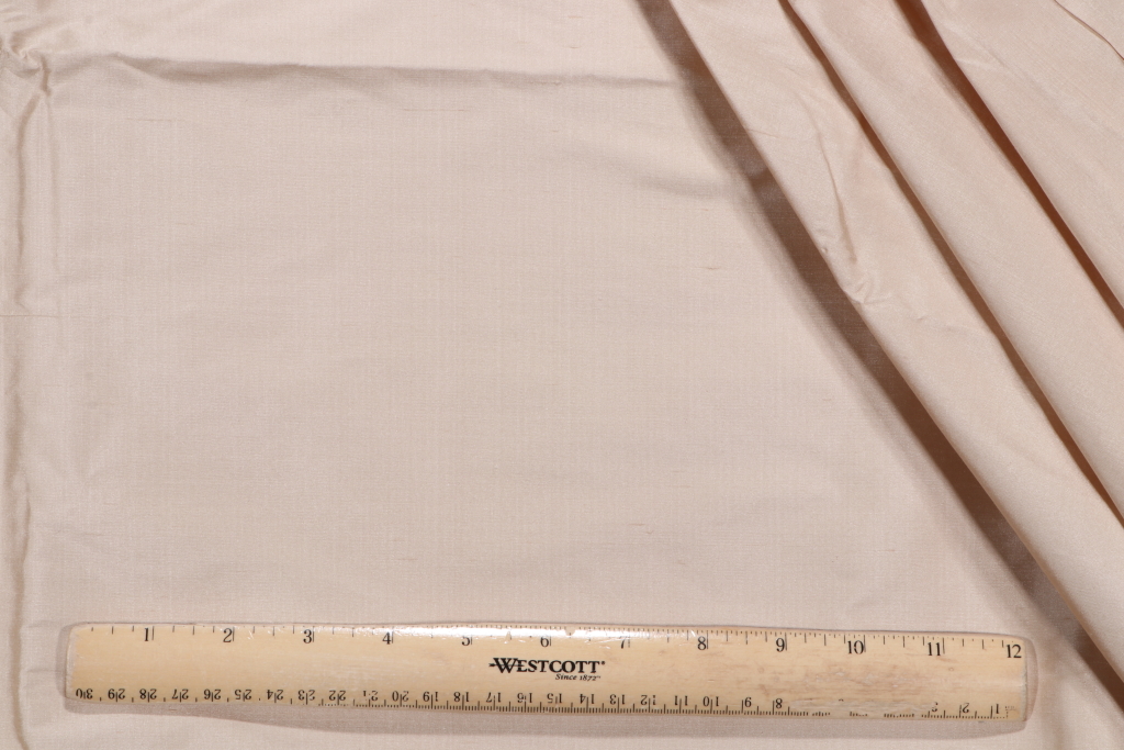 Amelia Silk Decorator Fabric in Vanilla is a remnant. Fabric remnants refer to leftover pieces of fabric from production runs at manufacturing sites or pieces that remain from by the yard stock. The lengths of these remnants can vary from a few inches to several yards and are typically sold at a reduced price, since they represent remaining inventory.