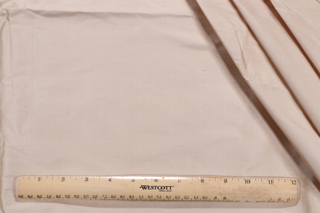 Amelia Silk Decorator Fabric in Vanilla is a remnant. Fabric remnants refer to leftover pieces of fabric from production runs at manufacturing sites or pieces that remain from by the yard stock. The lengths of these remnants can vary from a few inches to several yards and are typically sold at a reduced price, since they represent remaining inventory.