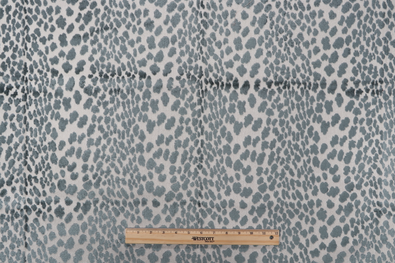 TFA Seeing Spots Latex Backed Velvet Upholstery Fabric in Aqua is a remnant, which is sold as a whole piece.