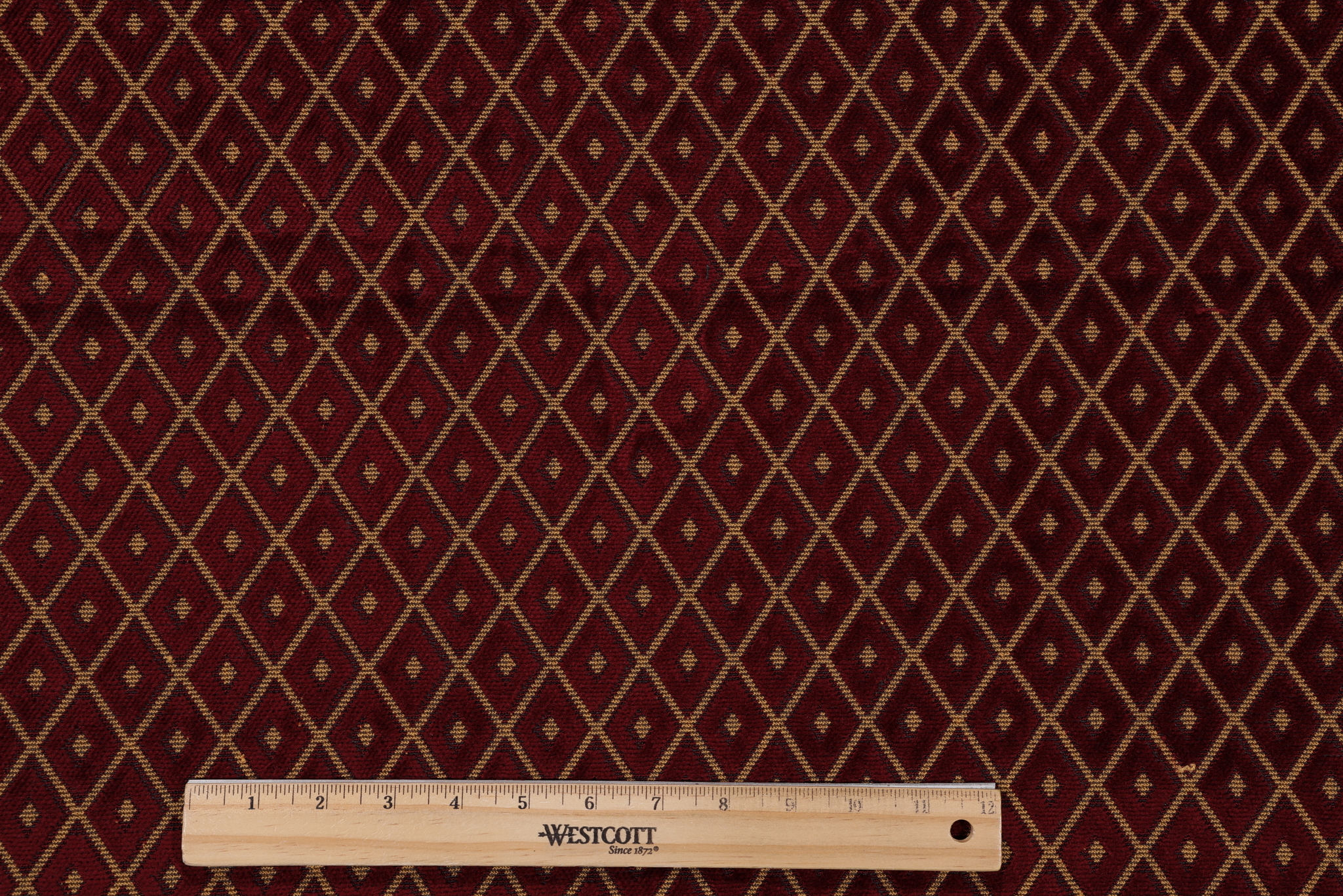 6.5 Yards Eldon Grospoint Velvet Upholstery Fabric in Ruby/Gold Details