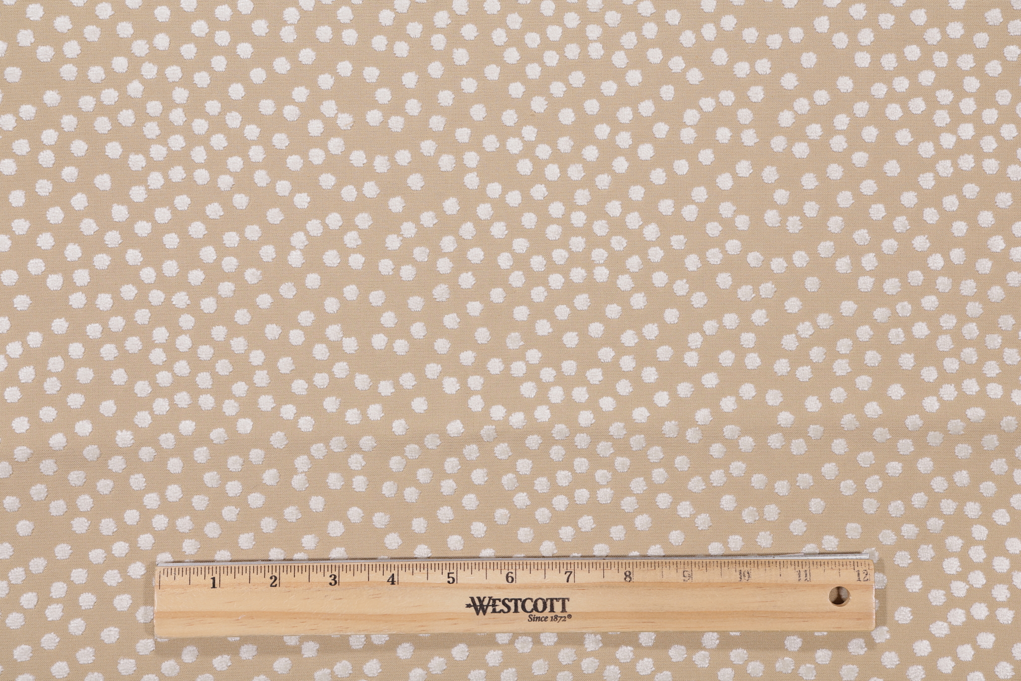 Fonthill Dotty Velvet Upholstery Fabric in Eggshell/Toast is a remnant, which is sold as a whole piece.