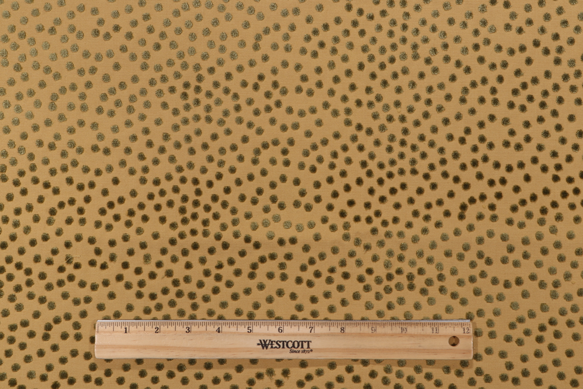 .5 Yards Fonthill Dotty Velvet Upholstery Fabric in Green/Pale Gold Details