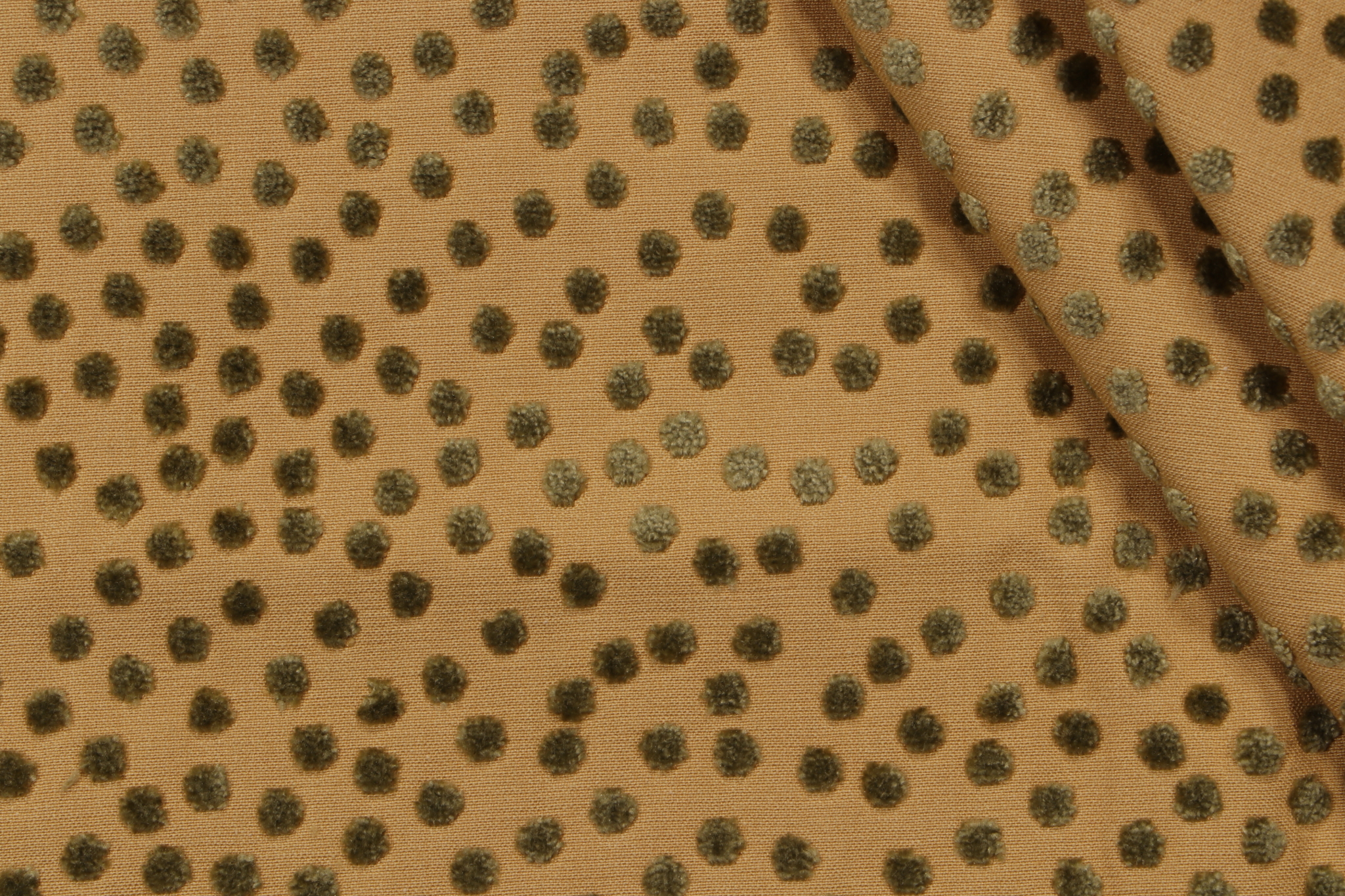 Available now: .5 yards of Dotty, a premium velvet upholstery fabric by Fonthill. This fabric is ideal for making small luxury accessories such as evening clutches, fabric-wrapped jewelry boxes, or decorative pillow trims. With beautiful hues of peru, dark olive green, sienna, green, and saddle brown, this fabric will perfectly accentuate your project. Make a statement with Fonthill fabrics, crafted for elegance, durability, and timeless appeal. Note: If you are unsure about the suitability of this fabric for your specific use case please contact us prior to ordering.