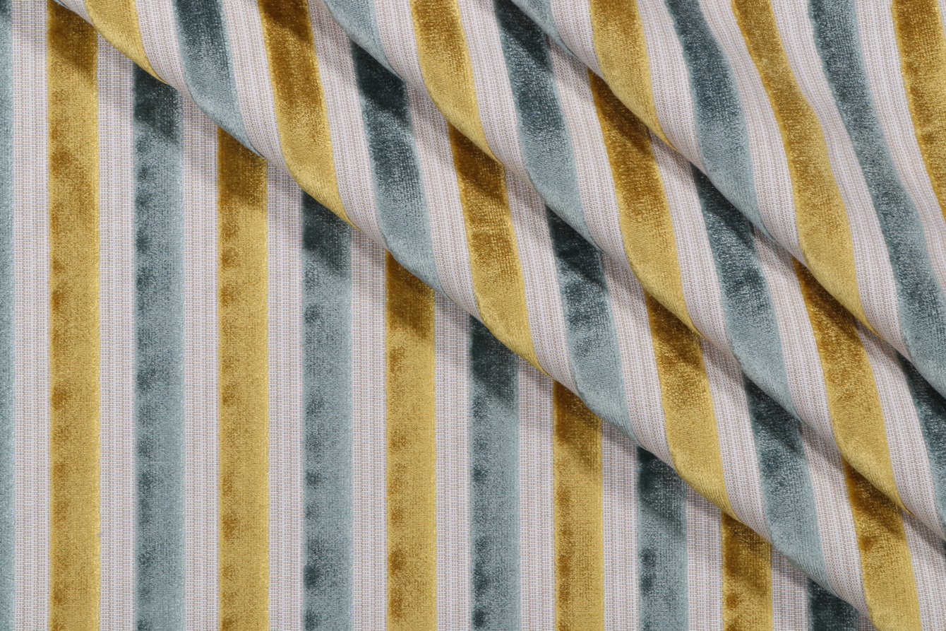 Gilbert Stripe Velvet Upholstery Fabric in Caribbean Details