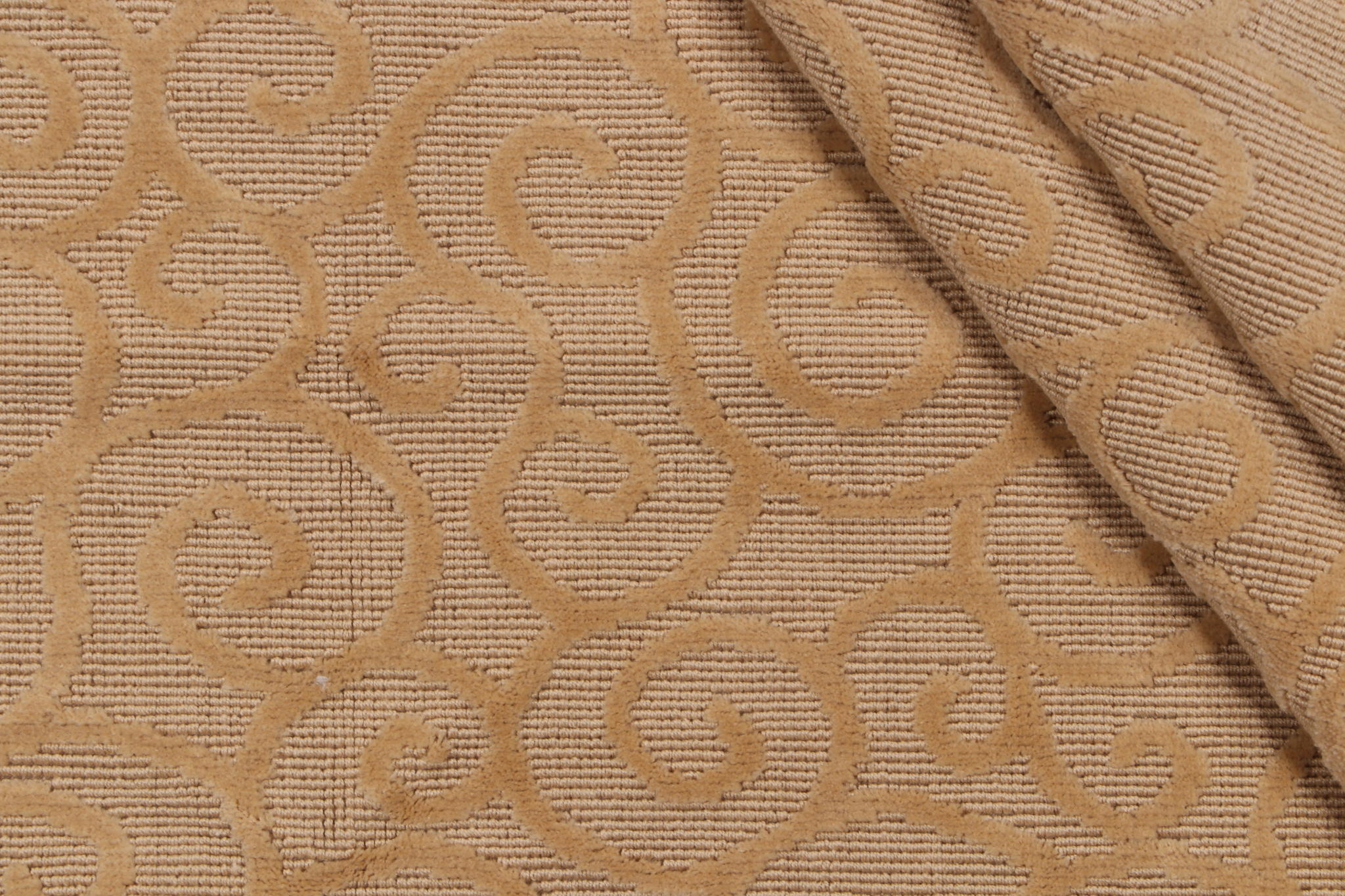 Grey Watkins Arabesque Grospoint Velvet Upholstery Fabric in Honey is a remnant, which is sold as a whole piece.