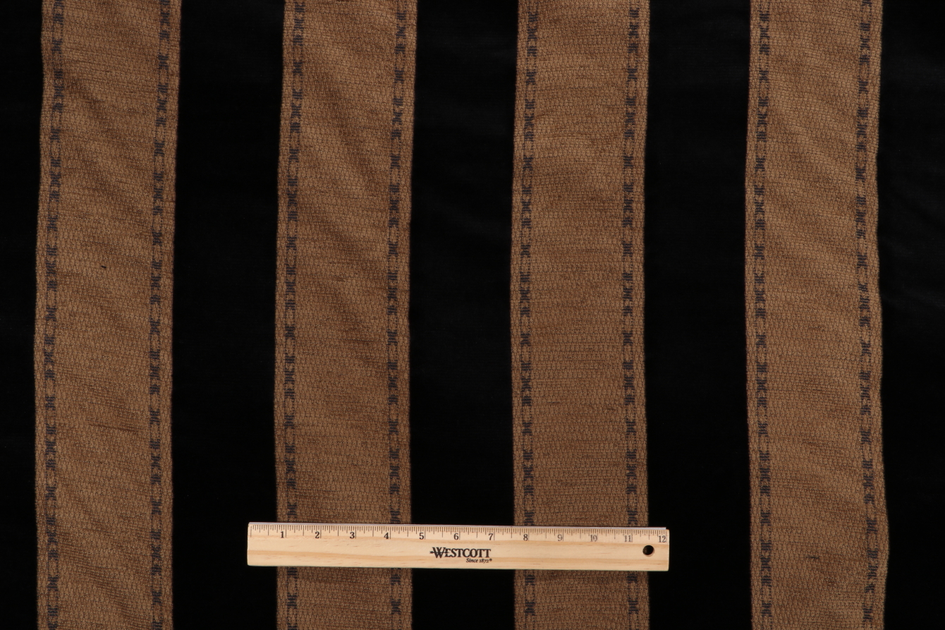 Available now: 8.38 yards of Avalon, a premium velvet upholstery fabric by Scalamandre. This fabric is well-suited for upholstering a single tufted accent chair, a cushioned ottoman, or a pair of decorative pillow shams. It can also be used for a high-end handbag or an elegant fabric headboard panel. Scalamandre is a heritage brand known for its opulent textiles, frequently featured in luxury estates, historic restorations, and high-end interior design projects. With beautiful hues of black, dark olive green, brown, saddle brown, and black, this fabric will perfectly accentuate your project. Note: If you are unsure about the suitability of this fabric for your specific use case please contact us prior to ordering.