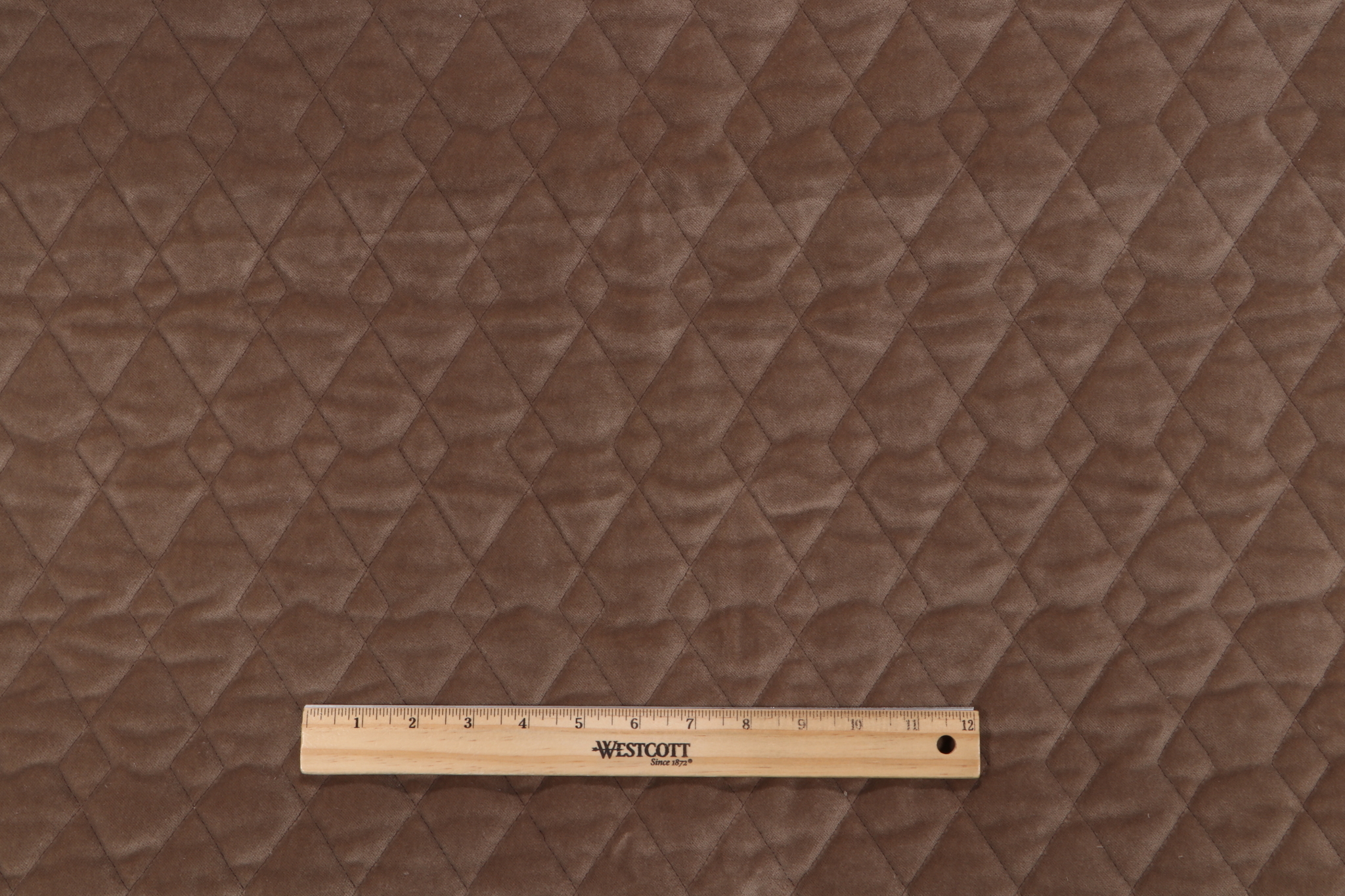 Valdese Weavers Argyle Quilted Velvet Upholstery Fabric in Toffee is a remnant, which is sold as a whole piece.