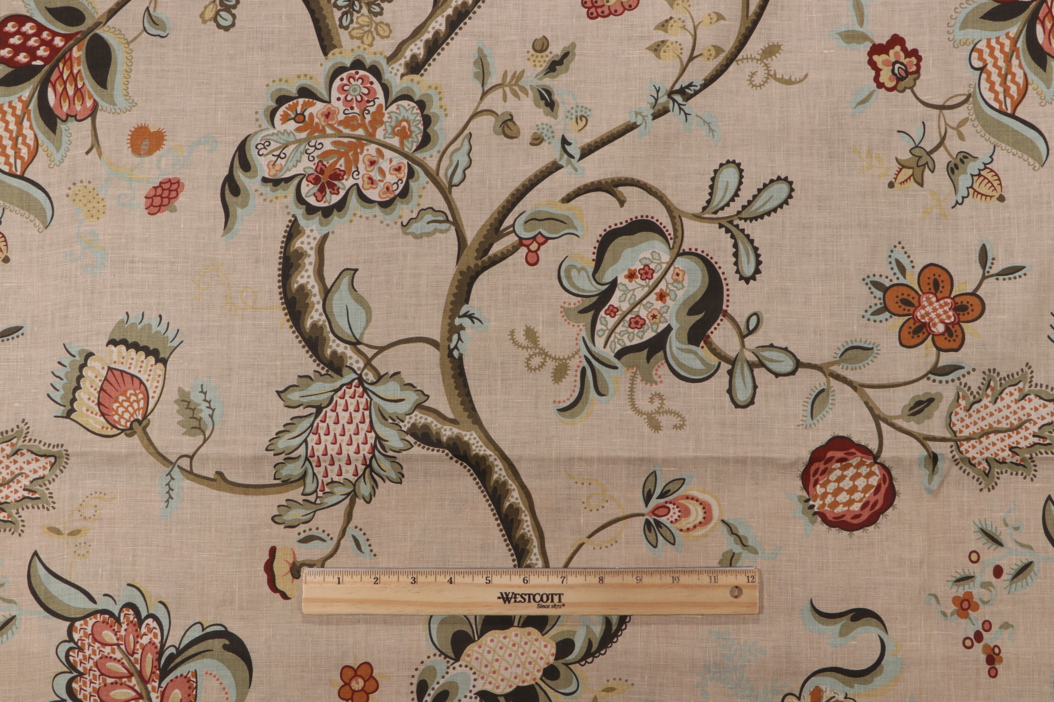 1.75 Yards Cheltenham Floral Printed Linen Drapery Fabric in Vintage Details