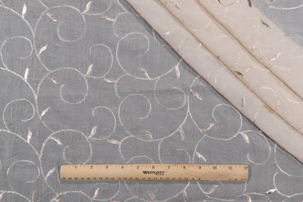 1.75 Yards Fargo Crushed Sheer Embroidered Drapery Fabric in Wheat Details