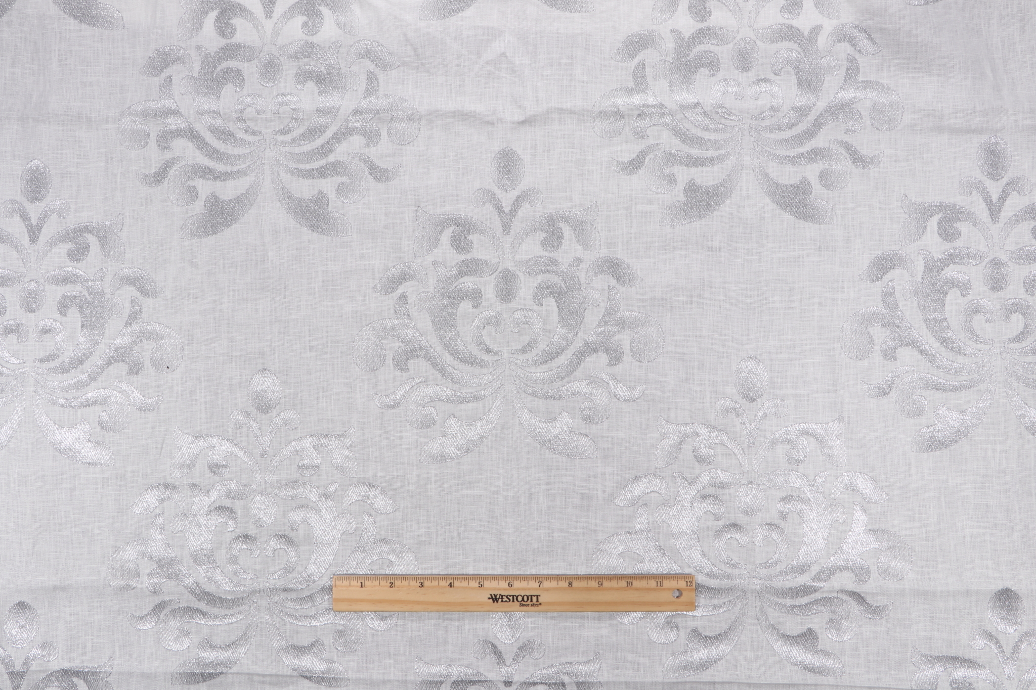 Anna French Glitter Damask AW9105 Embroidered Linen Drapery Fabric in White for Thibaut is a remnant, which is sold as a whole piece.