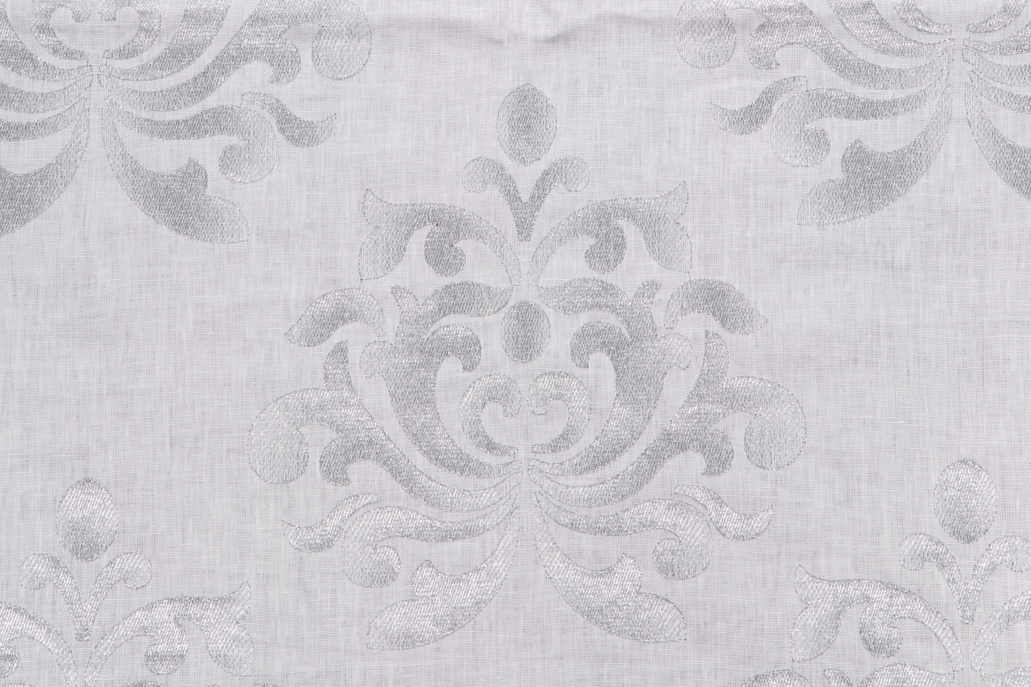 This listing showcases 1.5 yards of Anna French Glitter Damask, a embroidered linen drapery fabric by Thibaut. This fabric is suitable for short curtains, decorative tiebacks, or smaller window treatments. Note: If you are unsure about the suitability of this fabric for your specific use case please contact us prior to ordering.