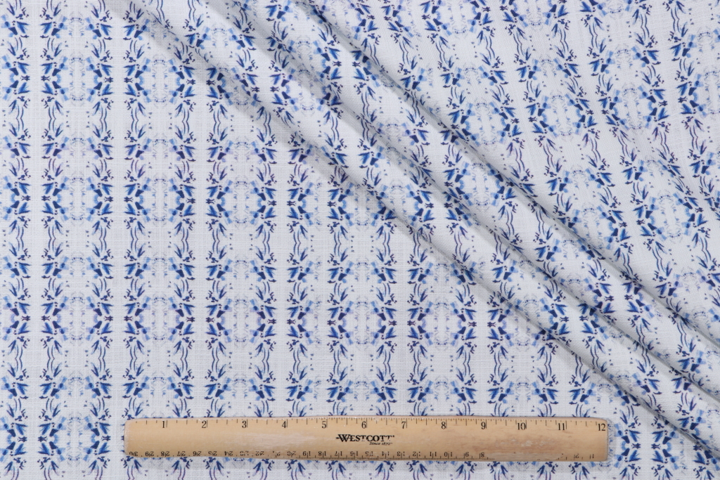 1 Yards Hamilton Rye Printed Cotton Drapery Fabric in Sapphire Details